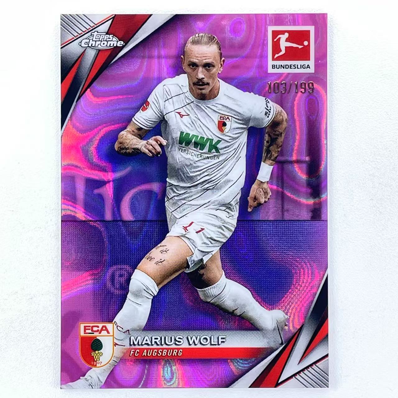 B+ 2024-25 Topps Bundesliga Chrome Marius Wolf 马里乌斯 沃尔夫 奥格斯堡 多特蒙德 德国 199编 粉熔岩折 折射 德甲 TC 轻印如图 BM166
