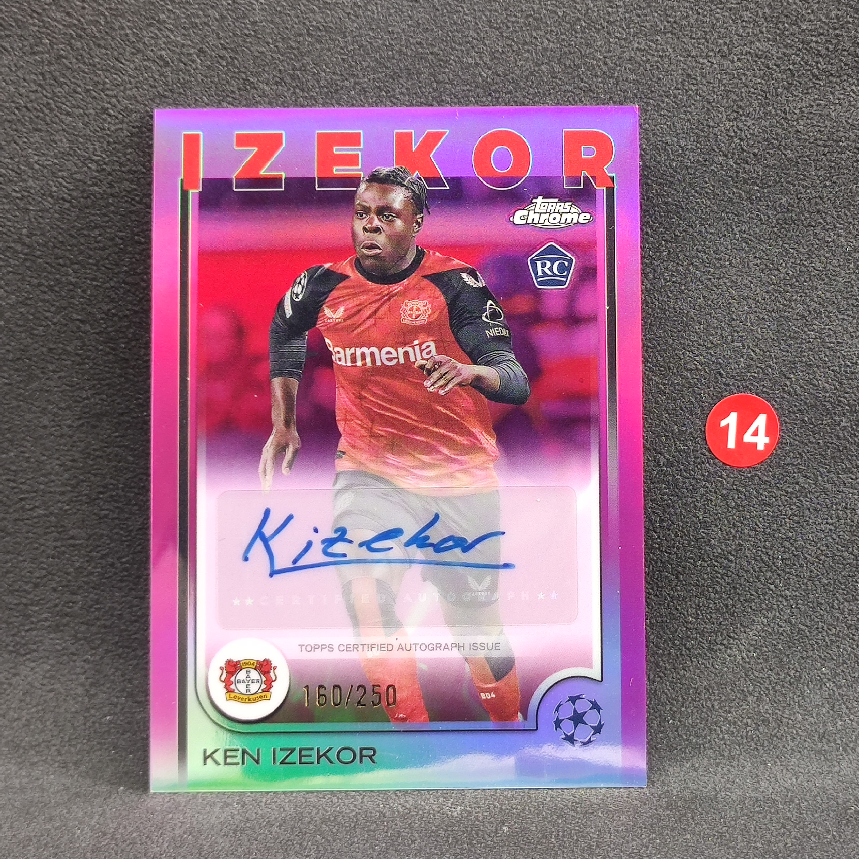 【大腿代卖提前预付80%】Ken Izekor 伊泽科尔 伊泽克尔 2025 Topps Chrome 欧冠 /250编带编限量 签字 签名 粉折折射 勒沃库森/瑕疵见详图/6747贰hy/b14