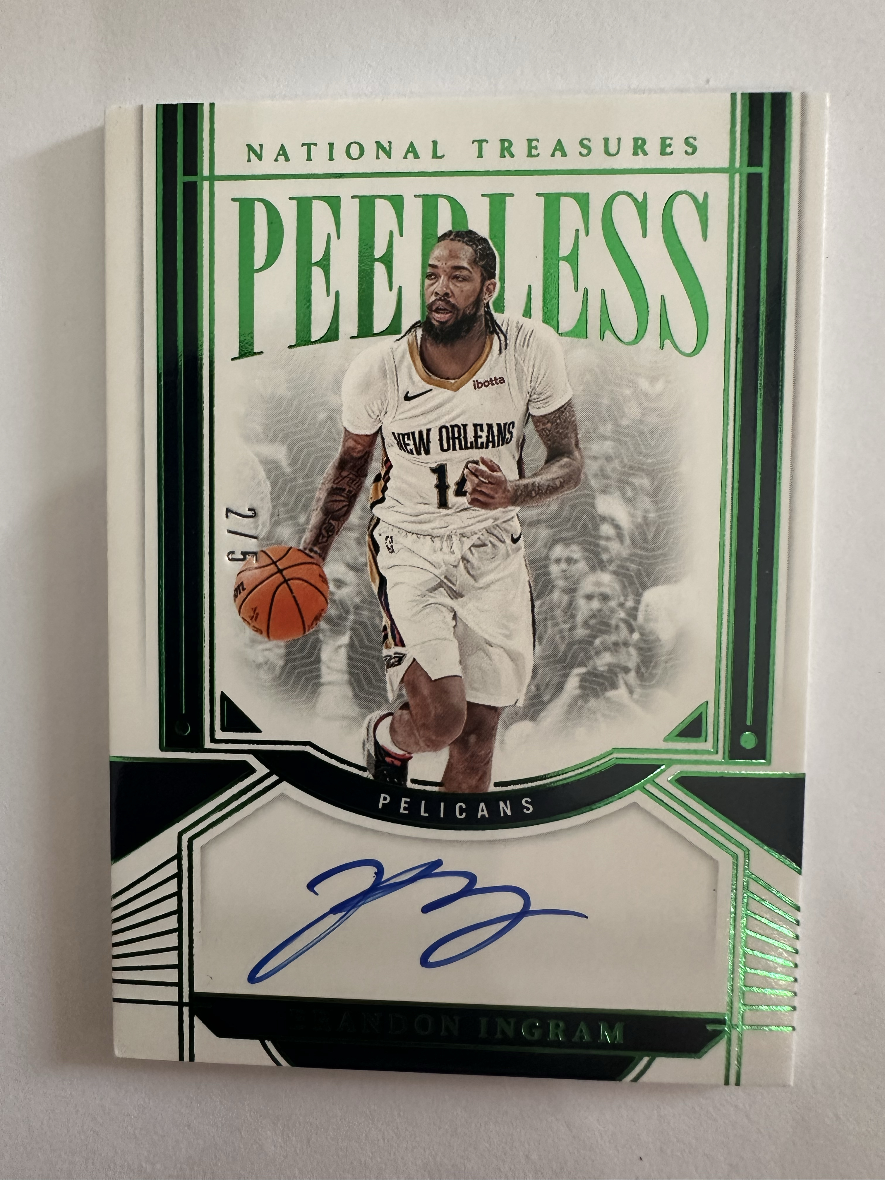 2023-24 Panini National Treasures Brandon Ingram 鹈鹕核心 湖人 布兰登 英格拉姆 莺歌 卡签 签字 2/5 绿平行 超低编 国宝 字迹完美 升值必备