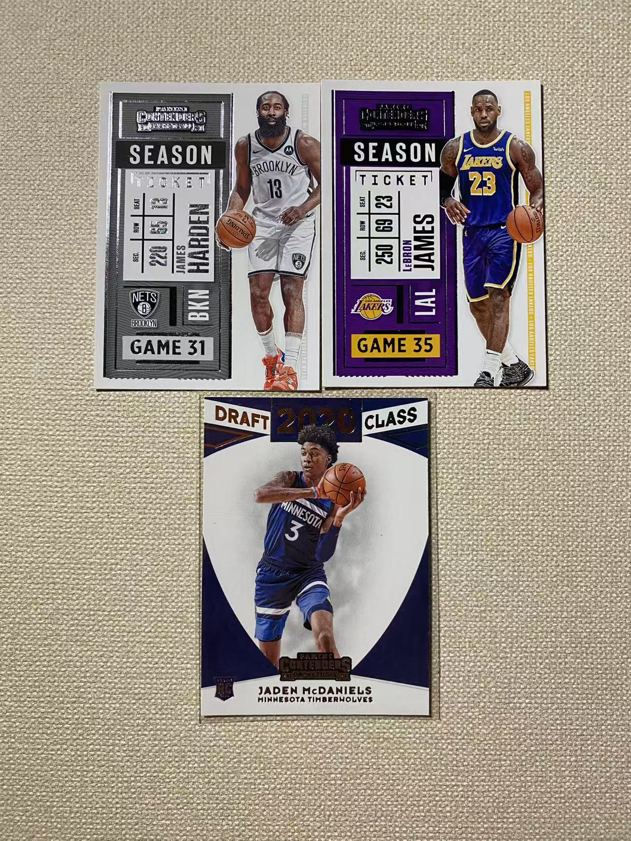 2020-21 Panini Contenders 多球员 勒布朗 詹姆斯 哈登 杰登 麦克丹尼尔斯 新秀 draft class特卡 湖人 篮网 森林狼 3张lot 不到付 不累计(肾)