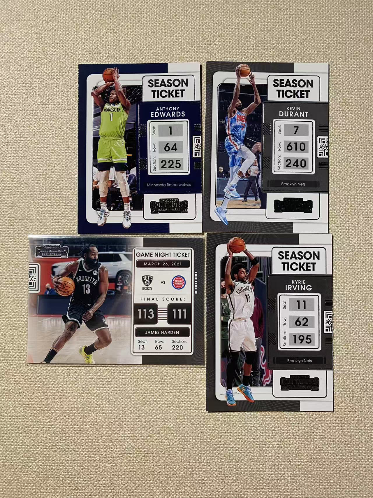 2021-22 Panini Contenders 多球员 球票 凯里 欧文 凯文 杜兰特 詹姆斯 哈登 爱德华兹 game night特卡 篮网 三巨头 森林狼 4张lot 不到付 不累计(肾)