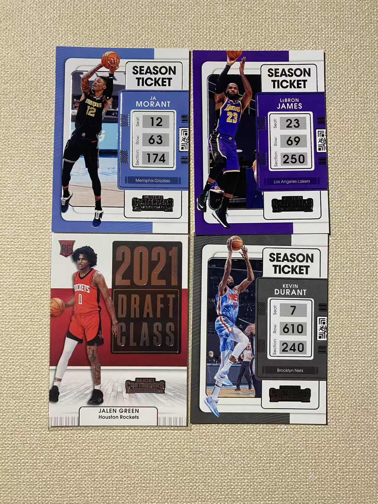 2021-22 Panini Contenders 多球员 球票 詹姆斯 杜兰特 莫兰特 杰伦 格林 新秀 draft class特卡 大小王 湖人 火箭 灰熊 篮网 4张lot 不到付 不累计(肾)