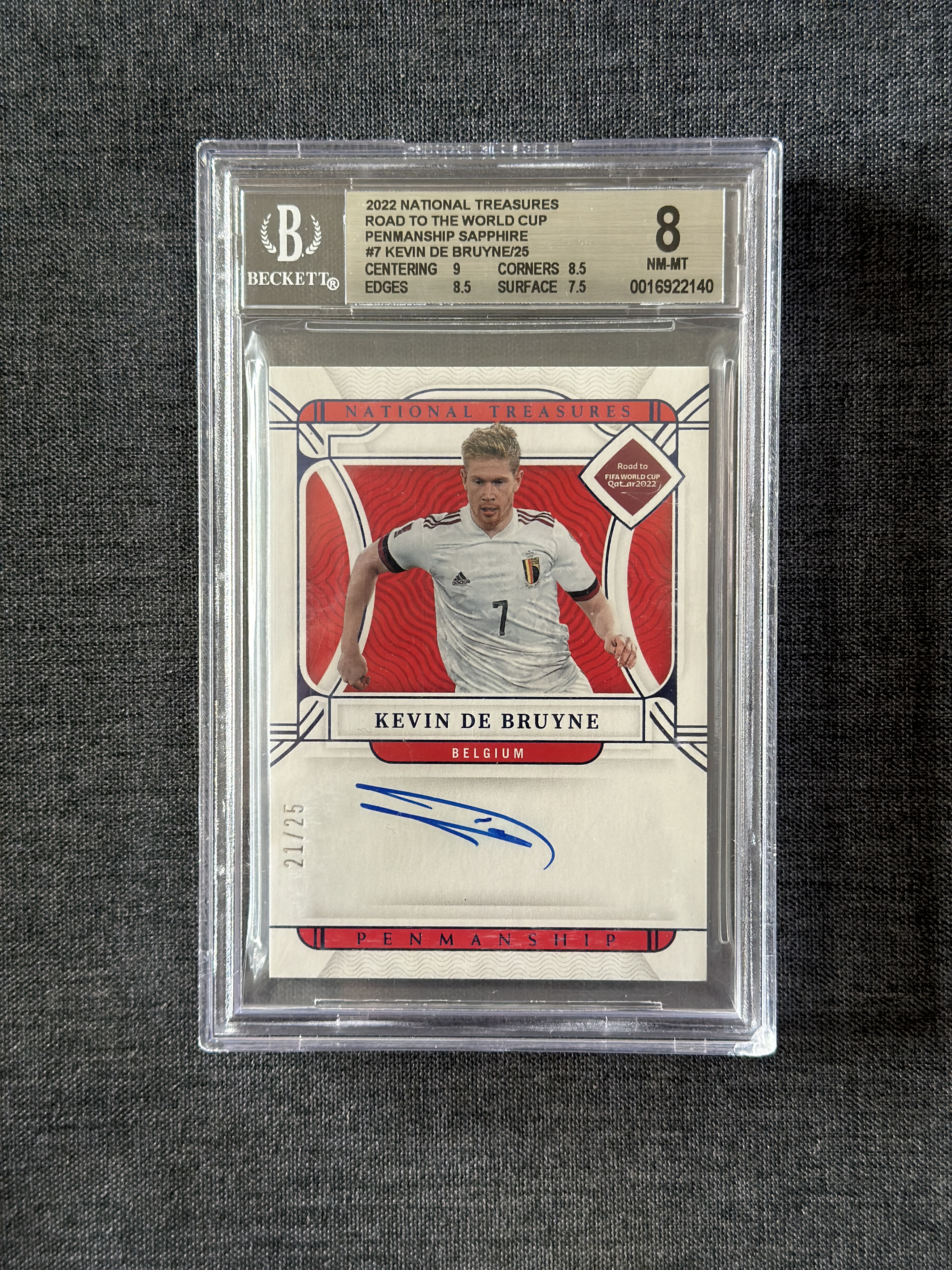 2022 Panini National Treasures Kevin De Bruyne 国宝世界杯 凯文 德布劳内 签字 卡签 21/25编 蓝平行 蓝折BGS评级卡品8分 比利时 曼城【FR】