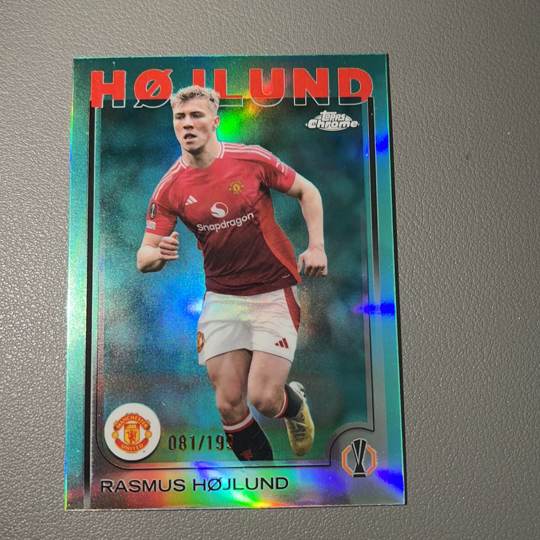 2024-25 Topps Chrome Rasmus Hojlund 2025 欧冠TC 霍伊伦德 丹麦 曼联 199编 青折 绿折 收藏必备 卡品如图 拍前看描述