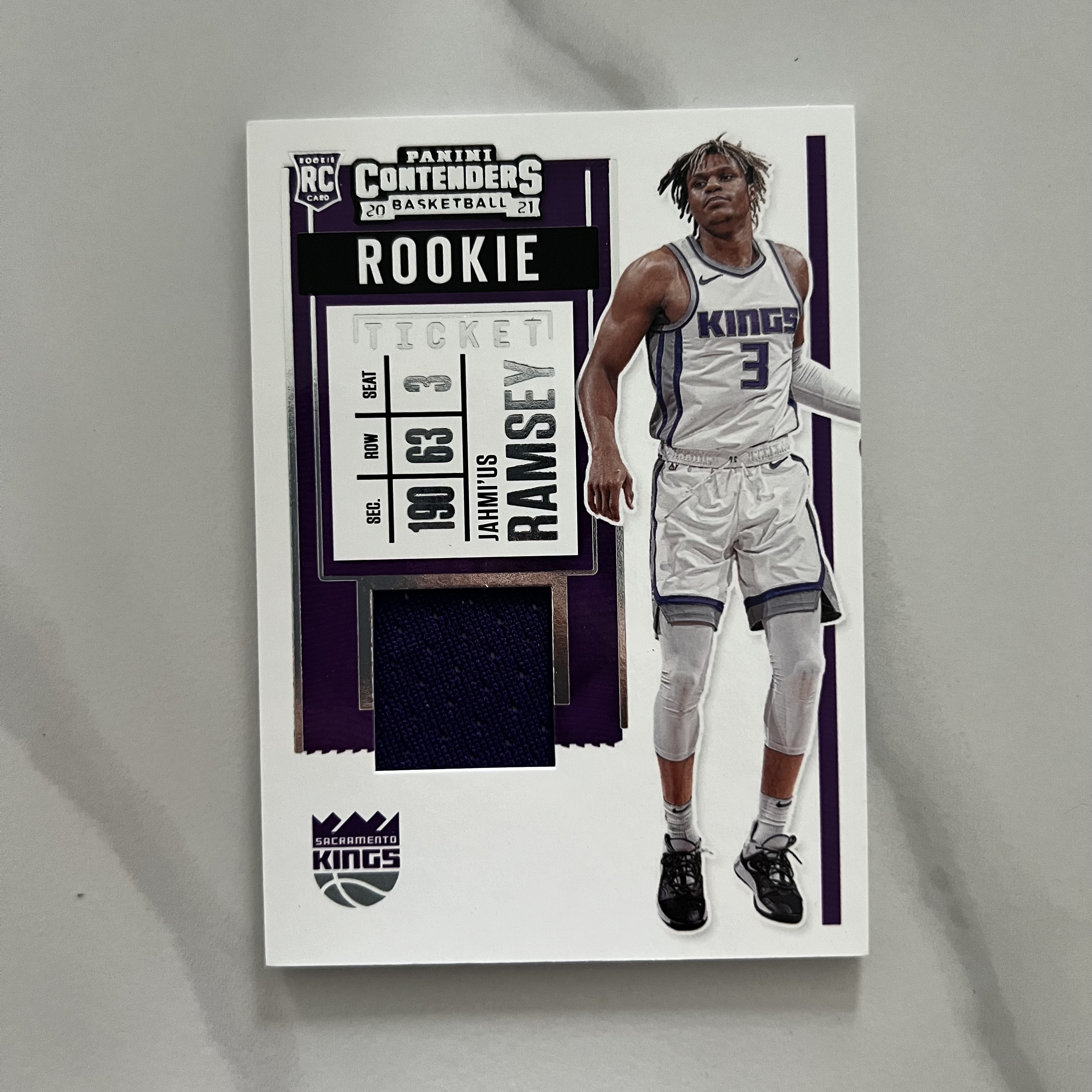 2020-21 Panini Contenders Jahmi'us Ramsey RC 【大锦拍卖】国王 热迈厄斯 拉姆齐 球票 新秀 RC 球衣 物料 卡品如图(南瓜)