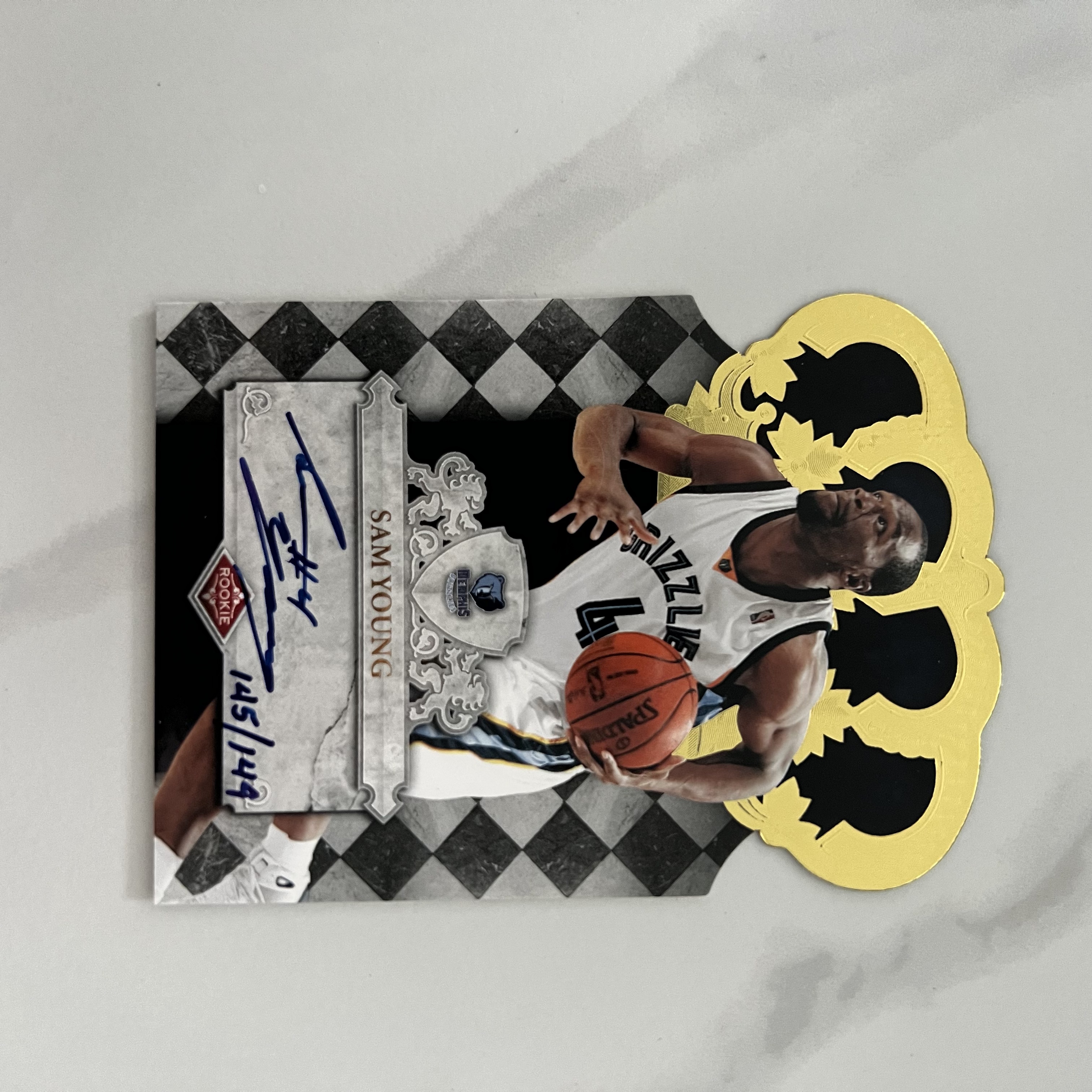 2010 Panini Crown Royale Sam Young 【大锦拍卖】灰熊 萨姆 杨 皇冠 145/149编 手写编 异形 签字 卡签 卡品如图(南瓜)