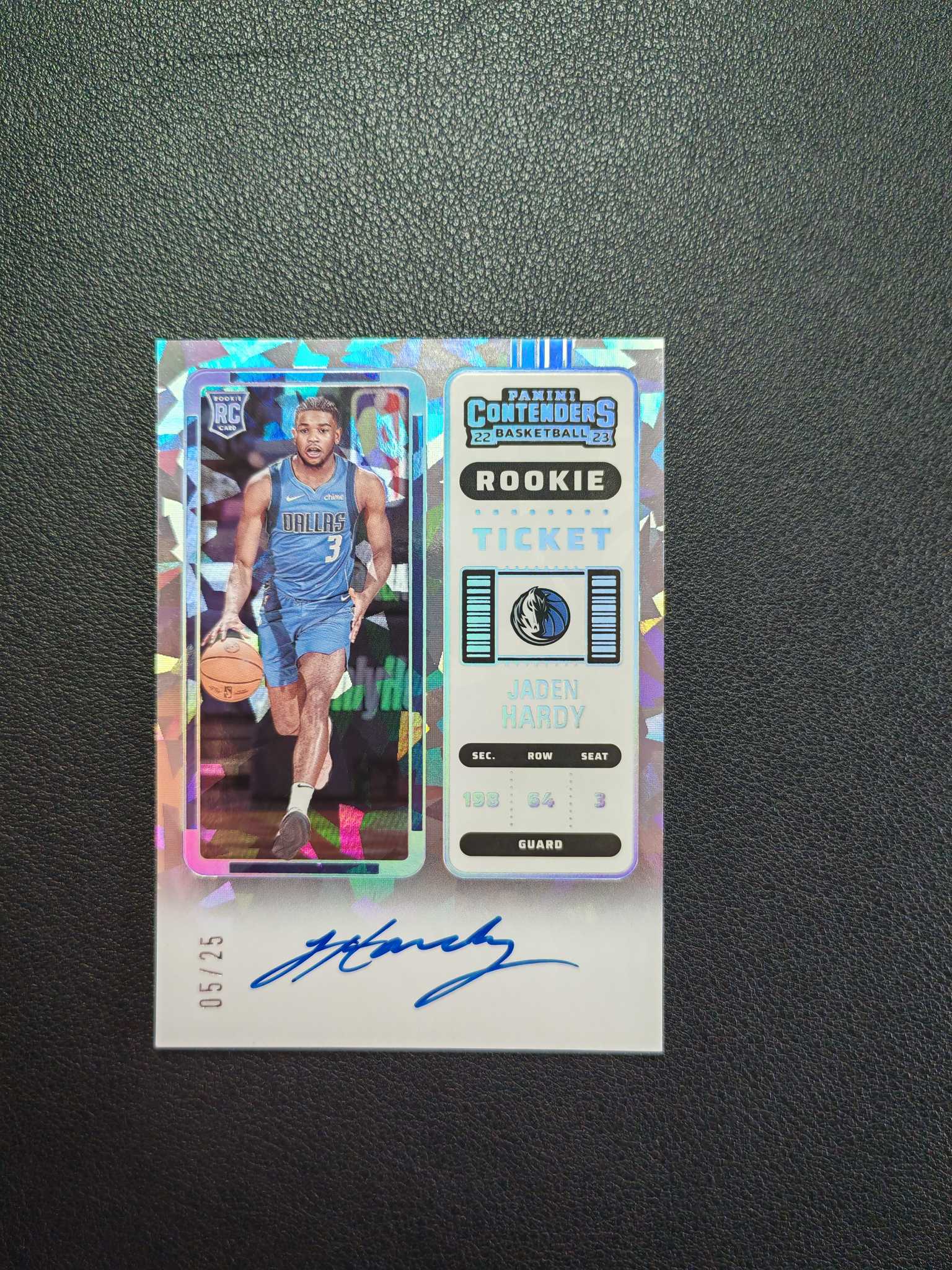2022-23 Panini Contenders Jaden Hardy RC 《招财猫拍卖》球票 独行侠 新秀RC 杰登 哈迪 签字 卡签 25编 碎冰折 大比例 微瑕【李总】