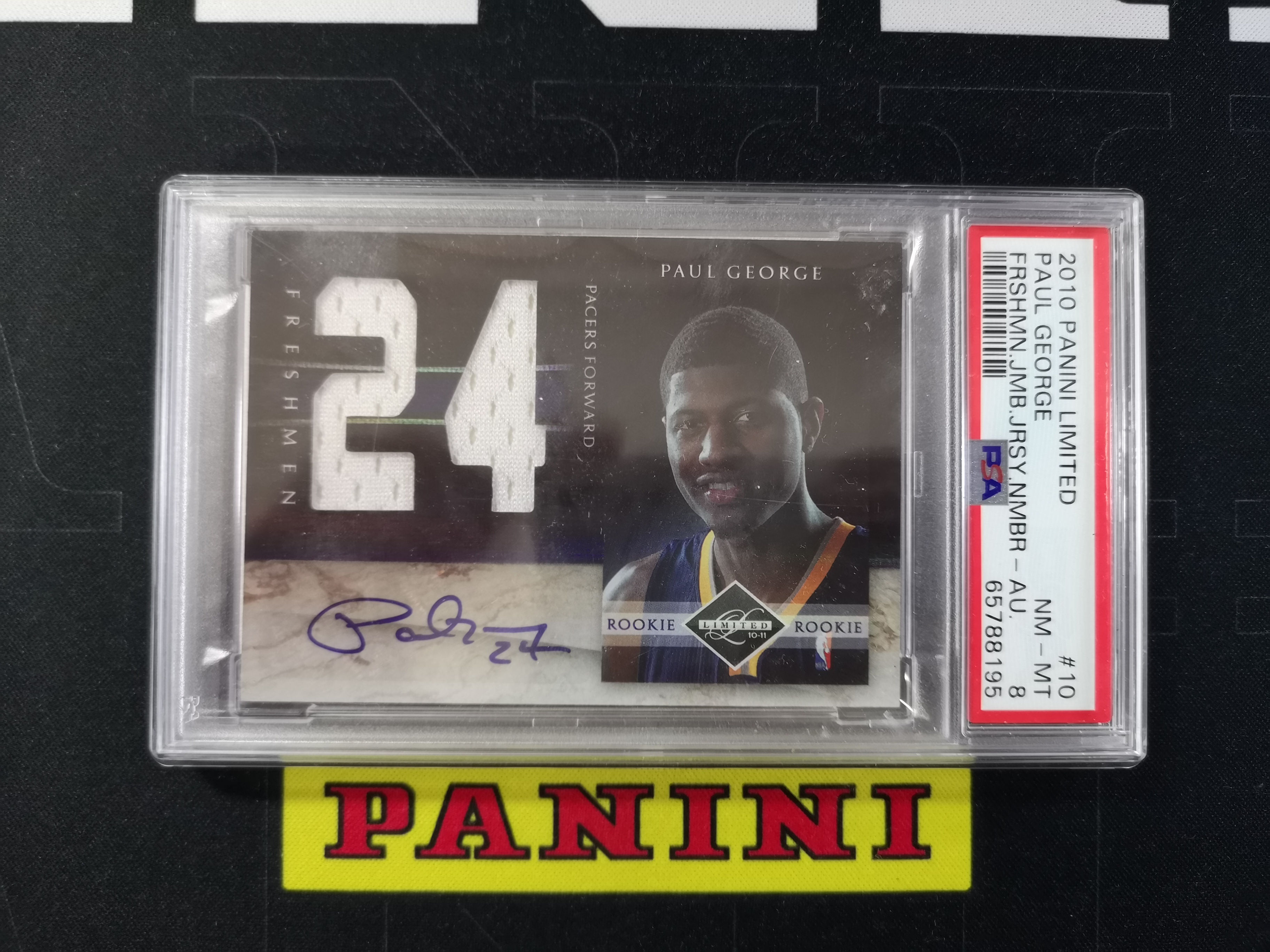 【皮猴代拍】2010 Panini Limited Paul George RC 步行者 新秀 保罗乔治 泡椒 RJA 签字 背号签 77/99编 球衣号码物料实物 PSA8分 卡品如图 CJH