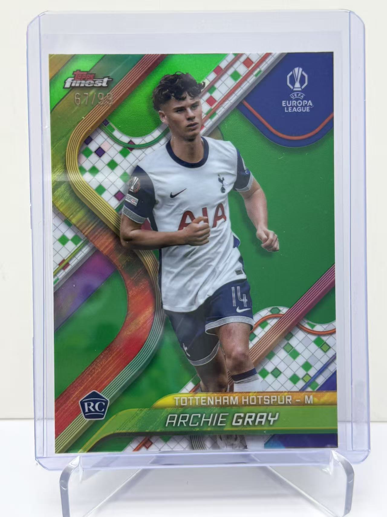2025 Topps Finest Aechie Gray RC 欧冠 Finest 热刺 格雷 新秀 绿折 67/99编 收藏必备 卡品如图(铁哥)