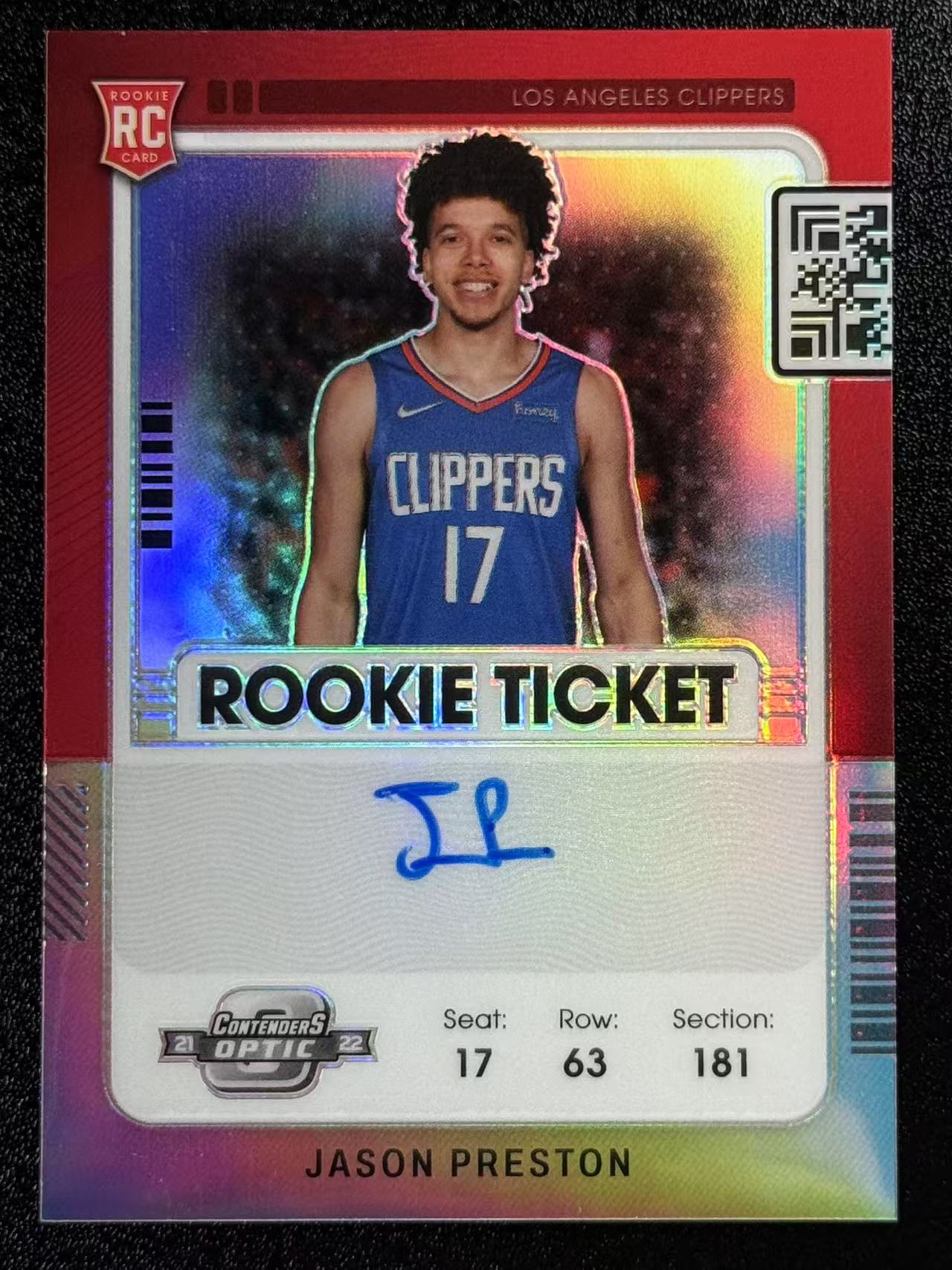 2021-22 Panini Contenders Optic Jason Preston 贾森普雷斯顿 新秀RC 快船选图 球票OP系列 银折 折射 签字 卡签 sleep 89