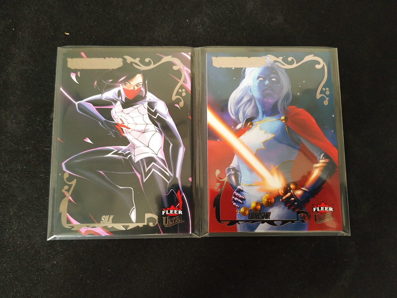 7-25【钢蛋儿拍卖】wgogen 102 Fleer 2024 Fleer Ultra Matriarchs of Marvel 漫威 女英雄 2张 base 黑平行 194编 蛛丝 Silk 类星体 Quasar 卡品如图