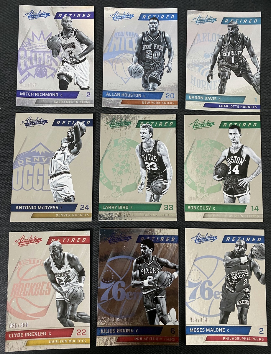 2015-16 Panini Absolute Julius Erving 【限量999编 传奇卡】9张一版 J博士 欧文 大鸟 伯德 库西 卡尔特人 德雷克斯勒 摩西 马龙 麦克戴斯 休斯顿 戴维斯