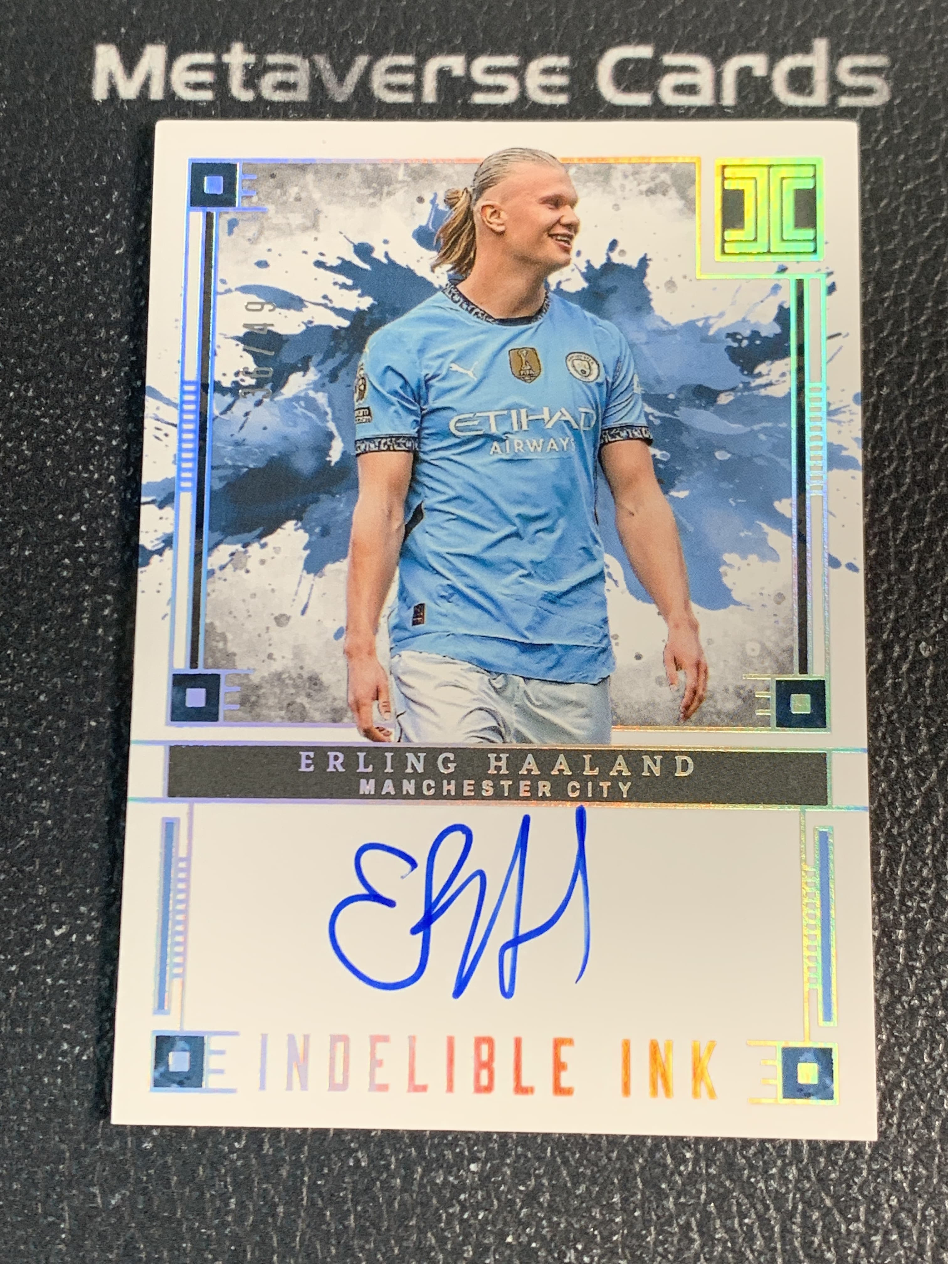 【元宇宙拍卖】角度总246:2024-25 Panini Impeccable Erling Haaland 英超 小真金 曼城 埃尔林 哈兰德 挪威 Indelible Ink 签字 卡签 银闪版 36/49编 微瑕如图 收藏必备