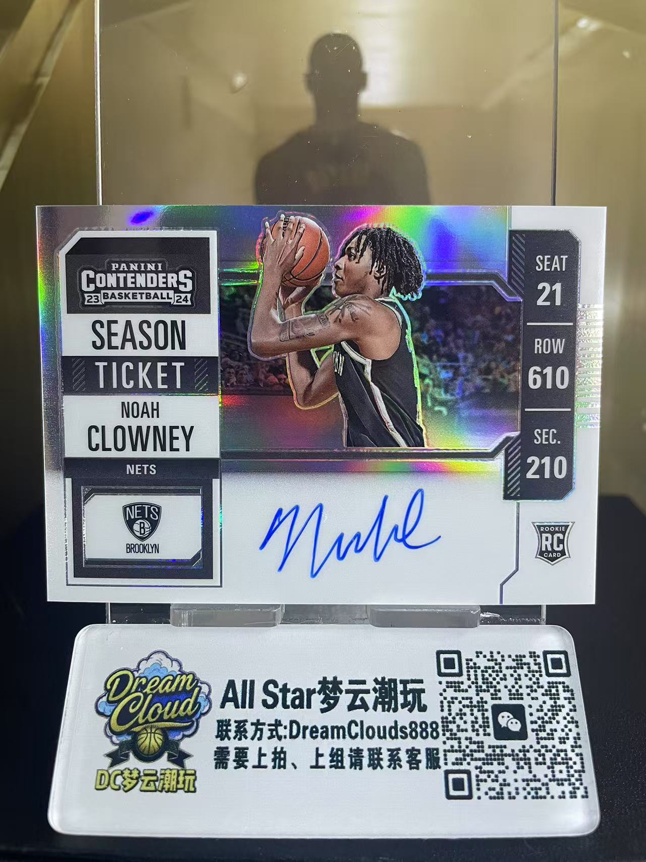2023-24 Panini Contenders Noah Clowney RC 【DC梦云潮玩】球票系列 布鲁克林篮网 新秀 诺阿 克洛尼 科洛尼 签字卡签 银折 折射 变化版 卡品如图 莎
