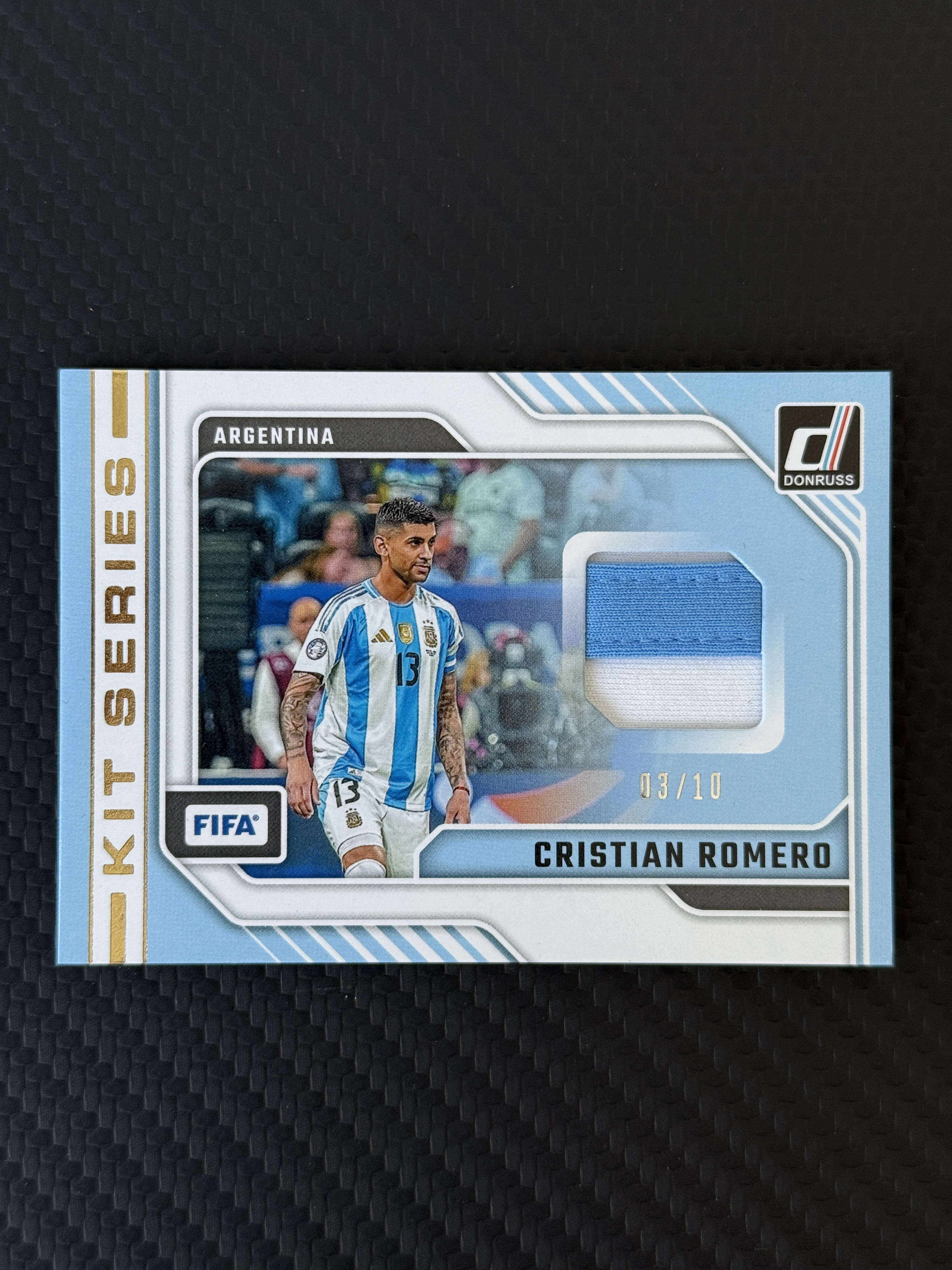 2024-25 Panini Donruss Cristian Romero 【包来拍卖】杜蕾斯FIFA 阿根廷 罗梅罗 球衣切割 低编 物料 Kit Series 3/10编 卡品如图 霸气11