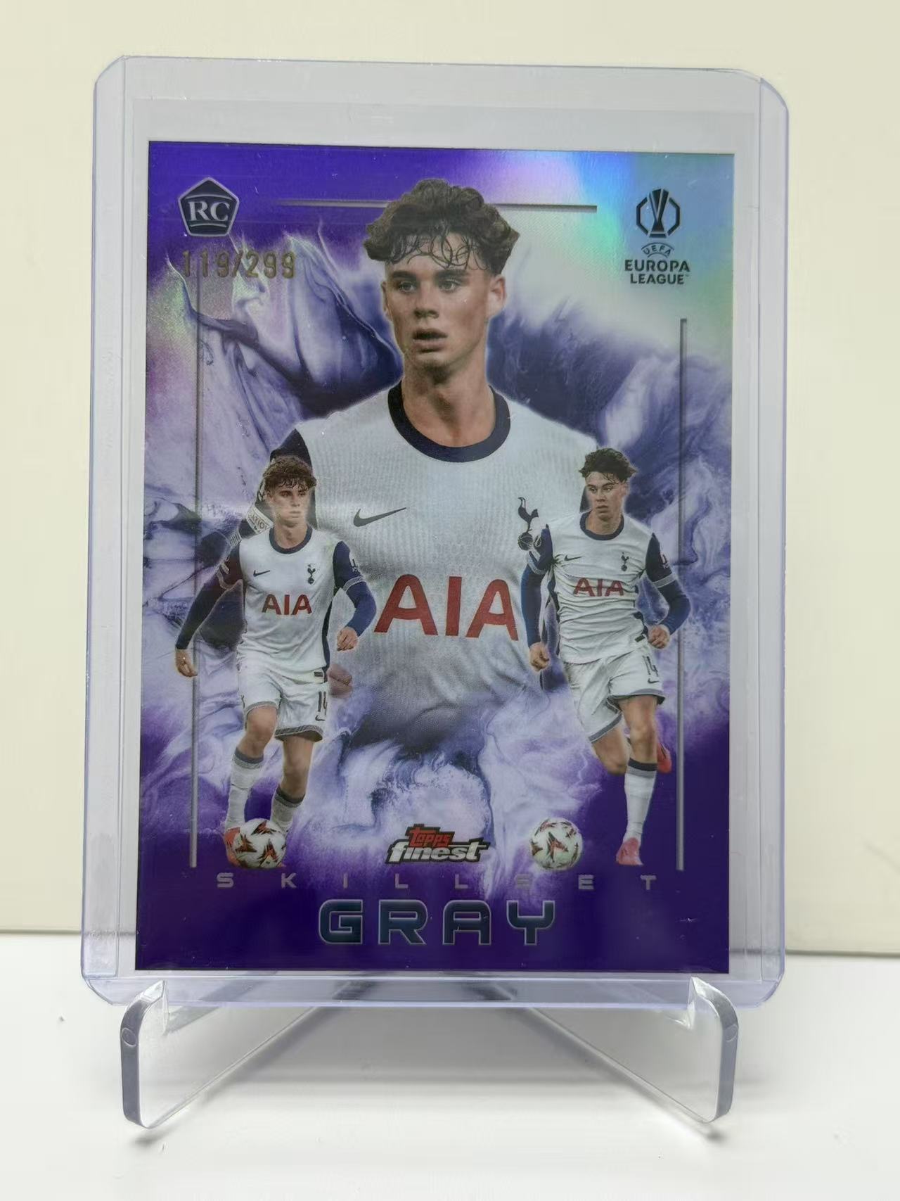 2025 Topps Finest archie gray RC 欧冠 Finest 热刺 新秀RC 阿奇 格雷 至臻技艺特卡 三头 技巧 特卡 紫折 119/299编 收藏必备 卡品如图(9527)