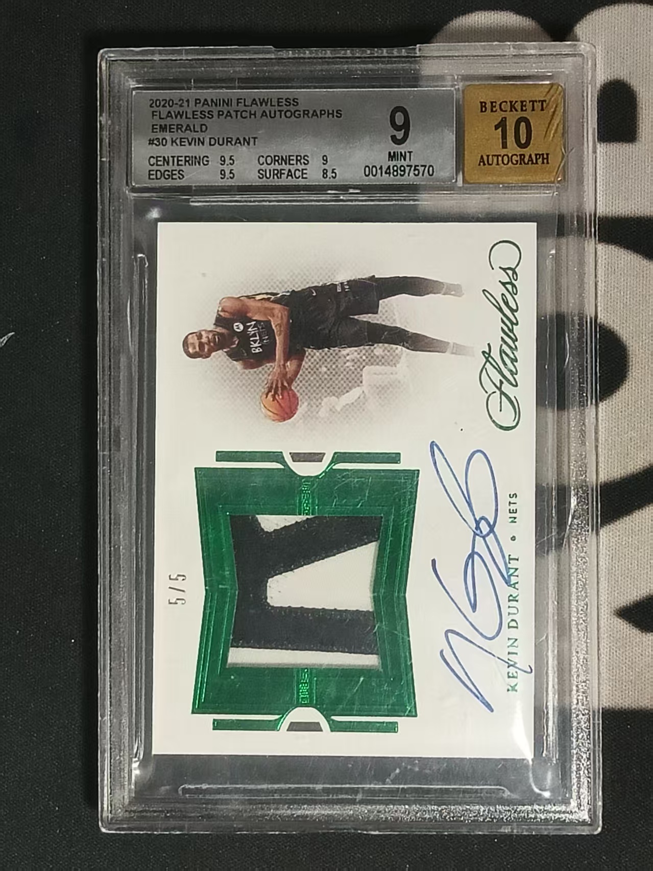 2020-21 Panini Flawless Kevin Durant 【啃卡代拍】篮网 凯文 杜兰特 手提 5编 尾编 绿平行 签字 卡签 Patch BGS9/10 壳微损 CMC0721B 鑫