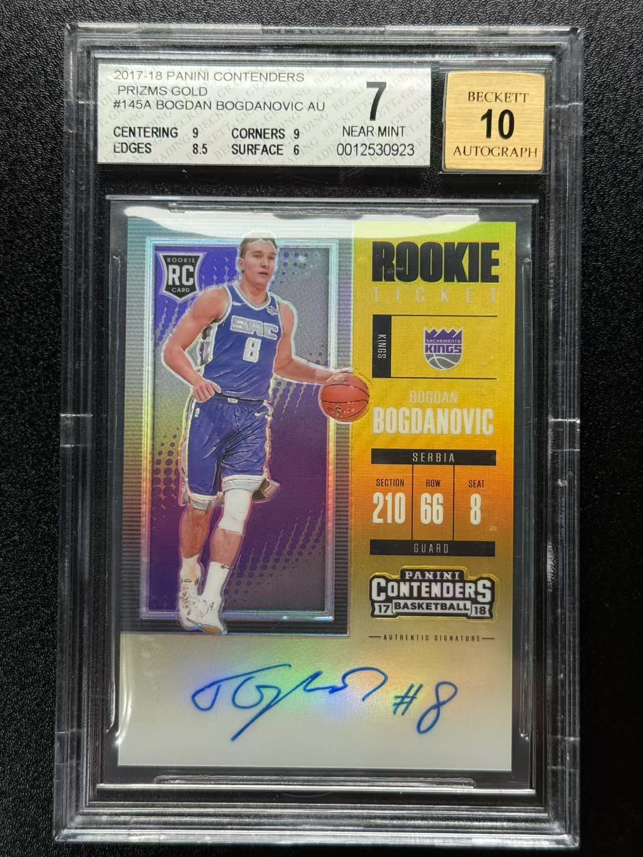 2017-18 Panini Contenders Bogdan Bogdanovic 博格丹博格达诺维奇 新秀RC 国王 球票 10编 金折 折射 背号签 签字 卡签 BGS7/10分 牛油果189