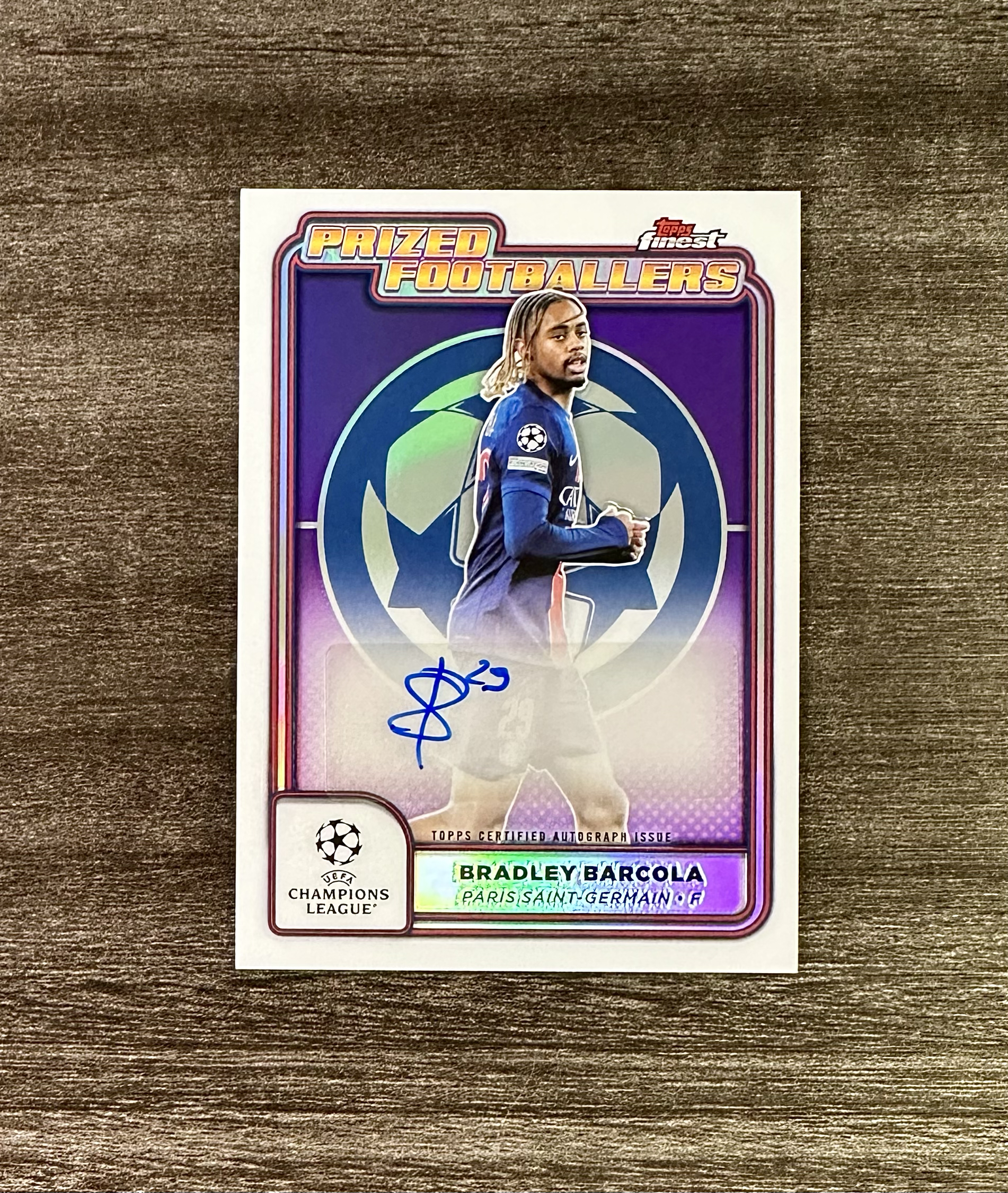 【1024拍卖】2024-25 Topps Finest Prized Footballers Auto 典范球员 签字 Bradley Barcola 巴尔科拉 大巴黎 轻微瑕 Yeung3