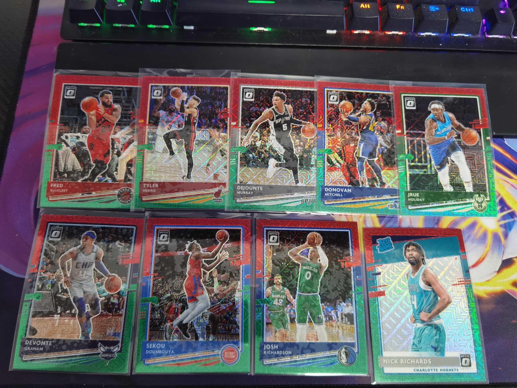 2020-21 Panini Donruss Optic Fred VanVleet 范弗里特 泰勒希罗 德章泰穆雷 多诺万米切尔 朱霍勒迪等 9张 红绿mojo折 折射 特卡 投资收藏佳品专收凑套必备