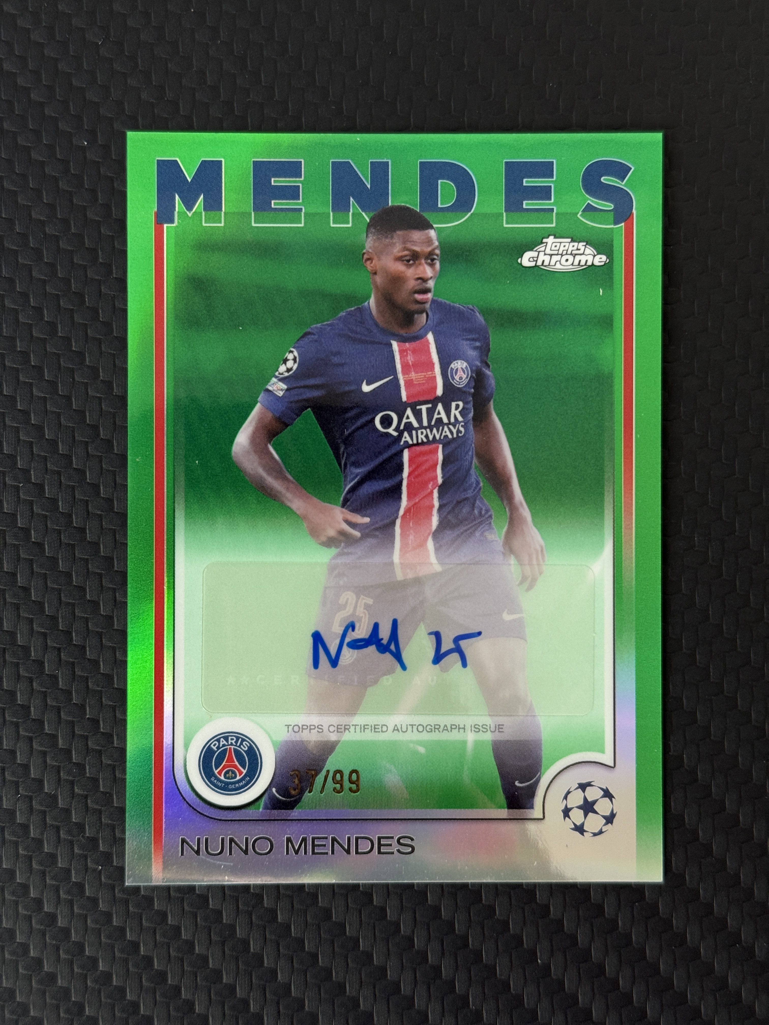 【包来拍卖】2025 Topps Chrome Nuno Mendes 欧冠TC 巴黎圣日耳曼 葡萄牙 努诺 门德斯 99编 绿折 折射 签字 签名 C罗队友 卡品如图 霸气11