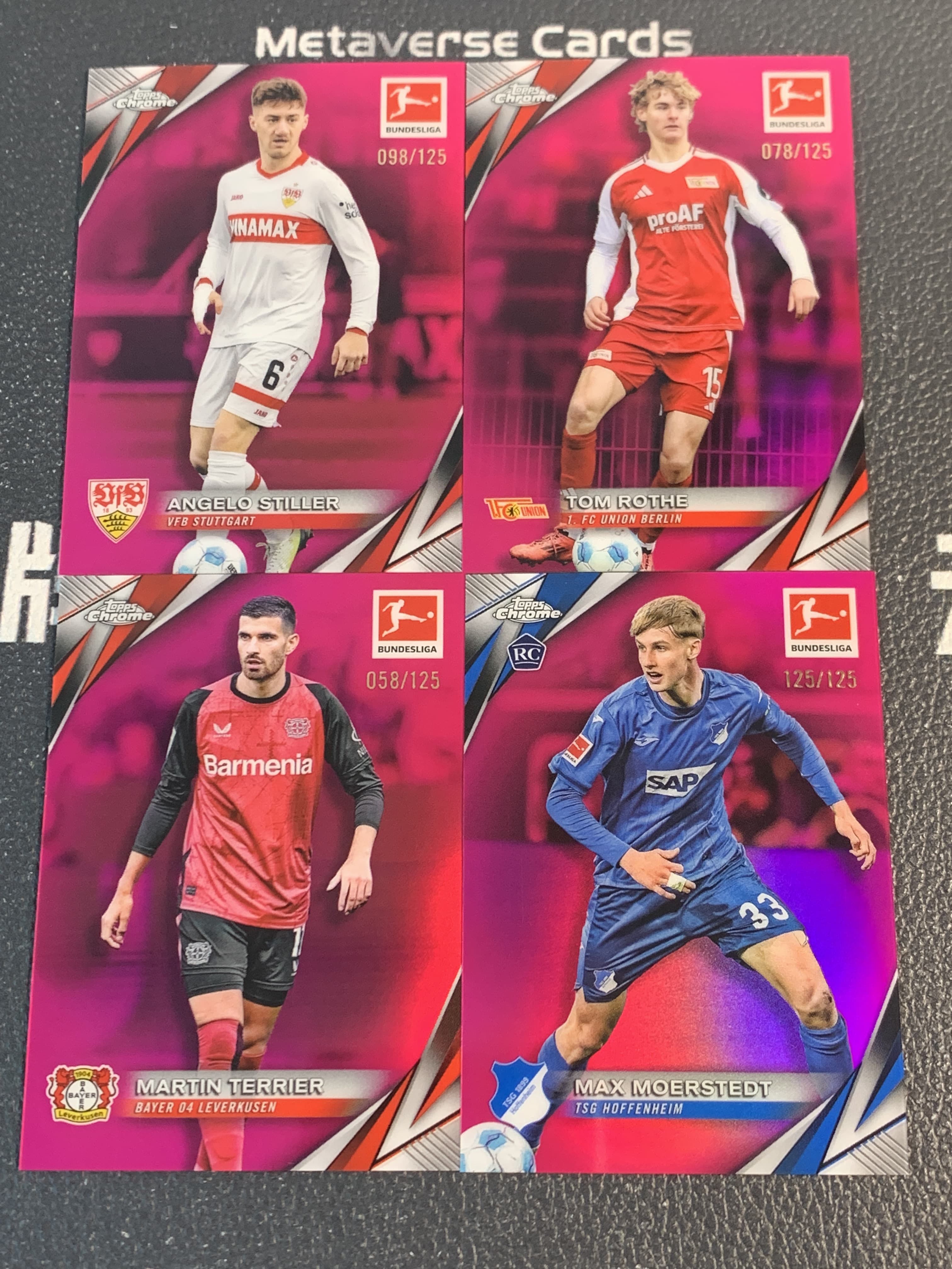 【元宇宙拍卖】吕先生785:2024-25 Topps Chrome 德甲tc 安杰洛施蒂勒 汤姆罗特 马丁泰里耶 品红折 /125编 马克斯 莫尔施泰特 新秀RC 125/125 尾编 4张打包lot