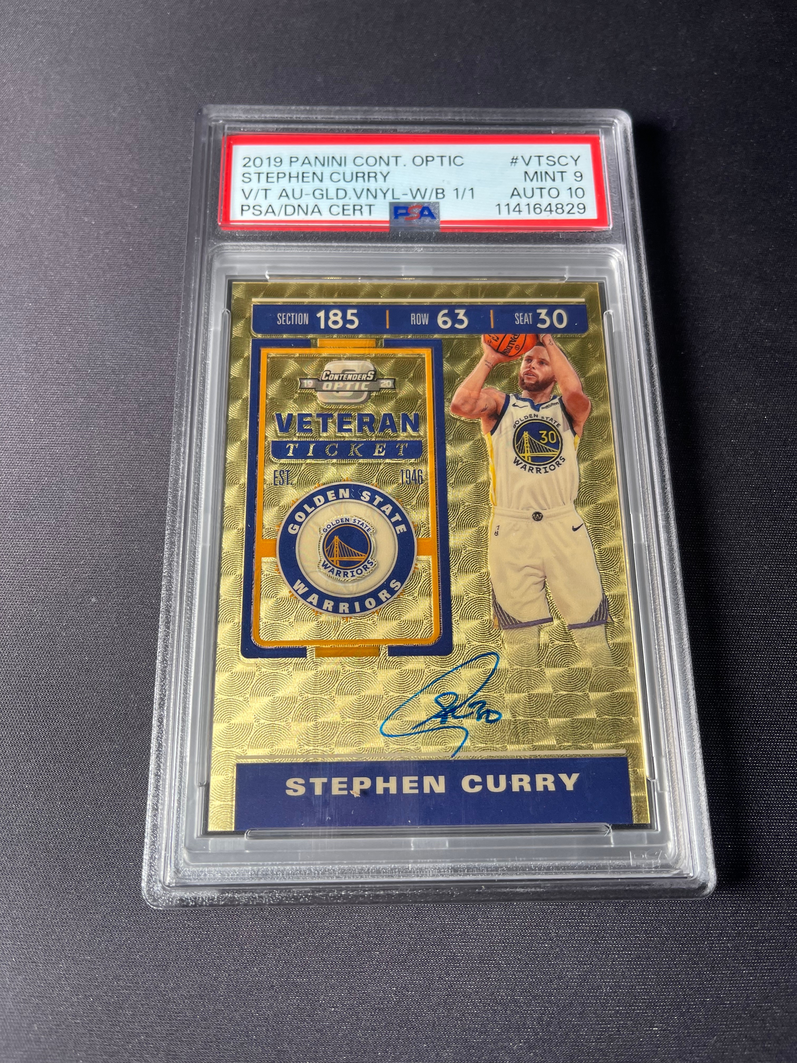 2019-20 Panini Contenders Optic Stephen Curry 白盒1/1编 球票OP 勇士 斯蒂芬库里 爆金签 签字卡签 折射 1of1 PSA9墨迹10「老夫子」无敌