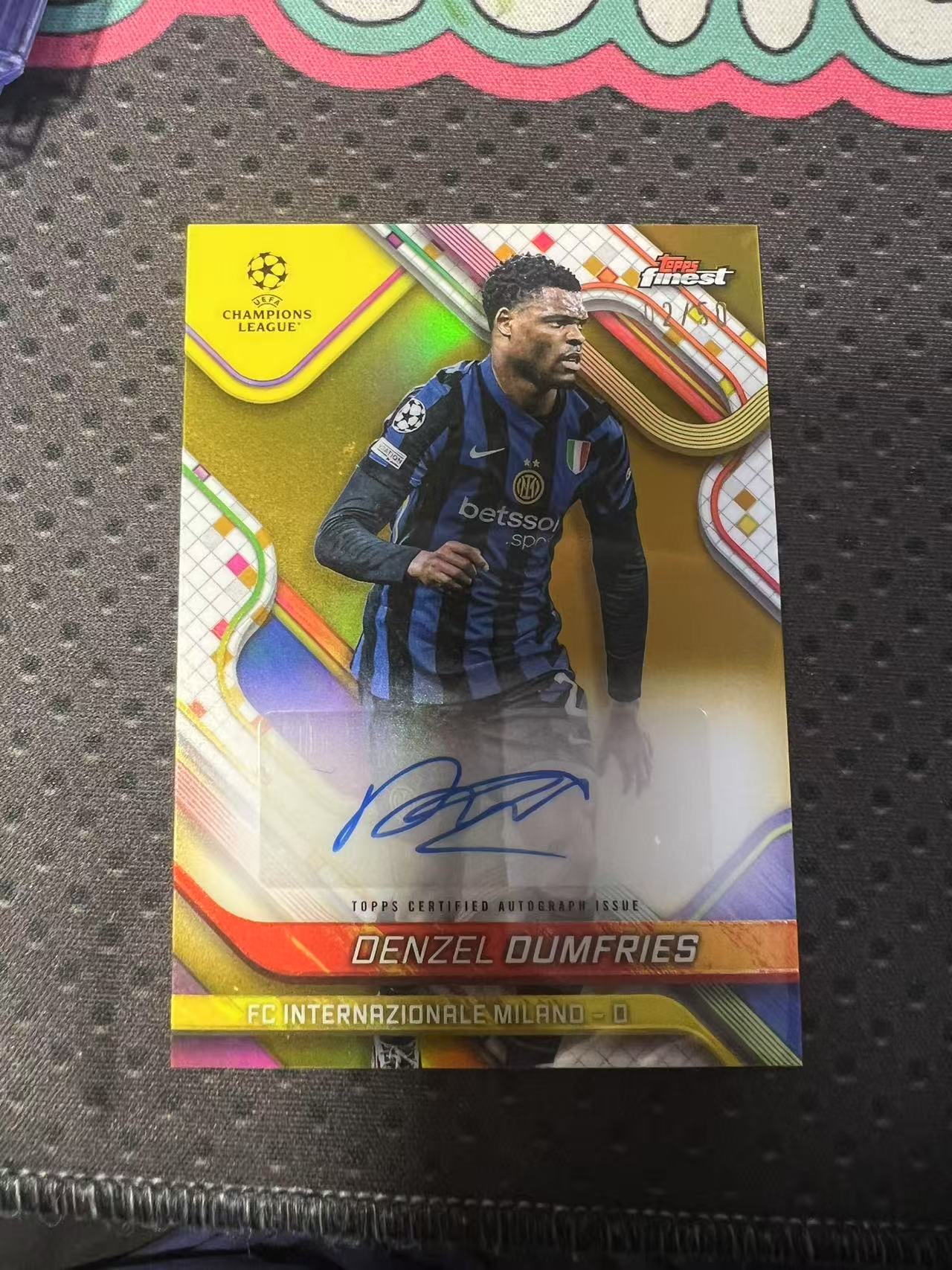 2024-25 Topps Finest Denzel Dumfries finest 邓弗里斯 金折 2/50 编 签字 真金折 低编 国际米兰 荷兰 卡品如图 半仙