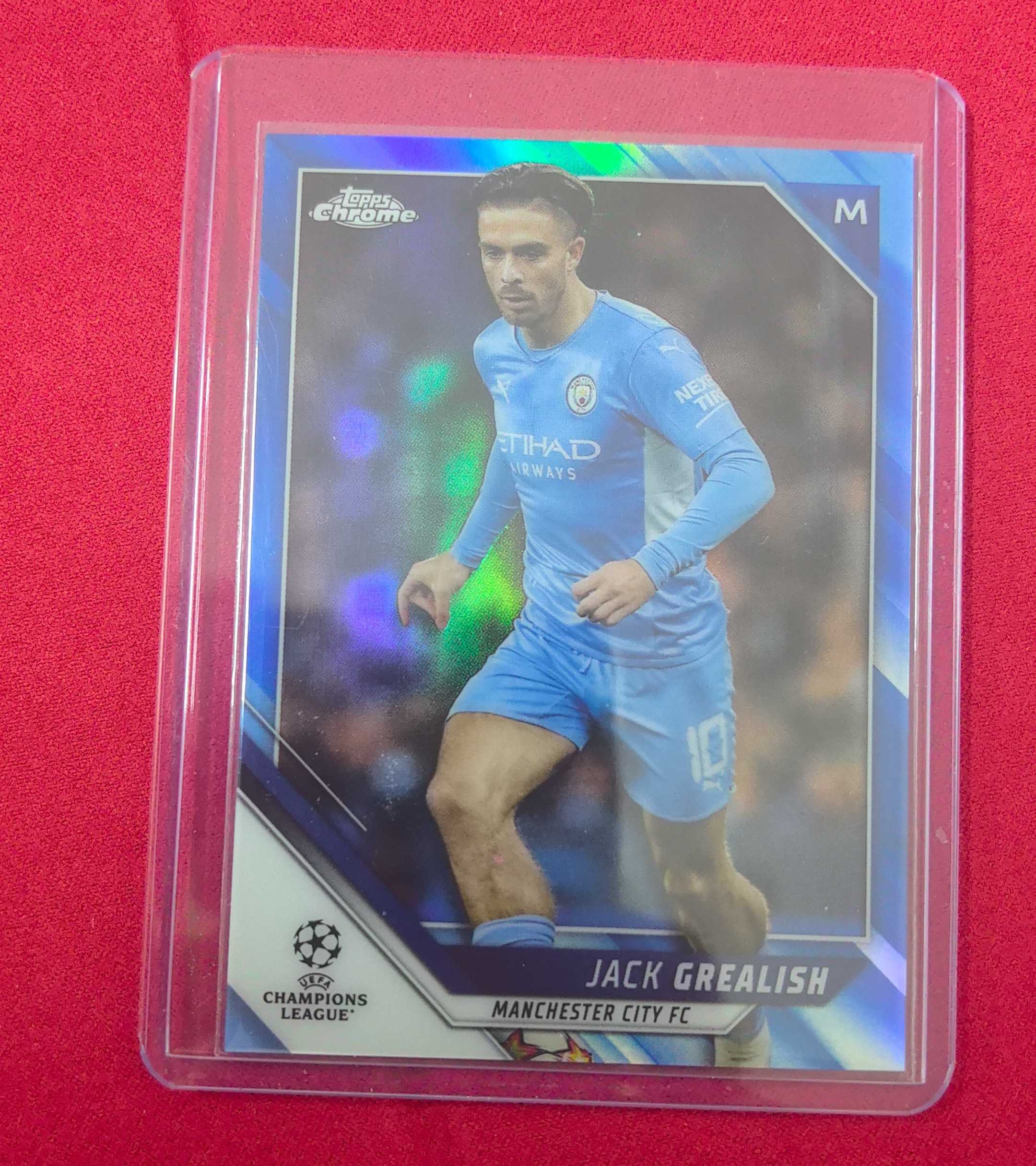 2022 Topps Chrome Jack Grealish 2021-22 Topps Chrome 杰克 格拉利什 摇子 曼城 英格兰 欧冠 TC 150编 蓝折 折射 轻印如图 cm