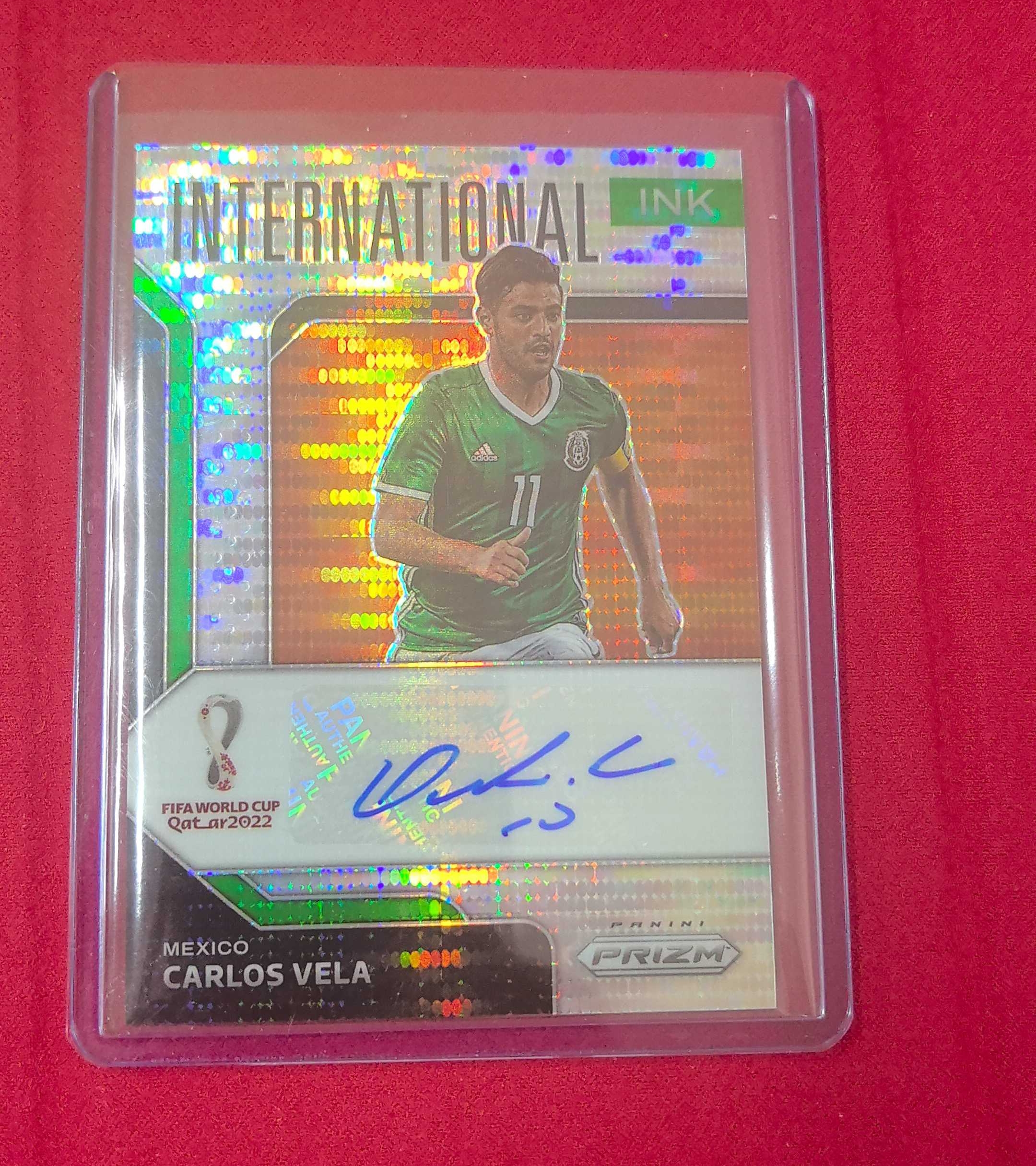 2022 Panini Panini Prizm Carlos Vela PZ 卡塔尔世界杯 墨西哥 卡洛斯 贝拉 脉冲折 International Ink签 贴签 卡品如图