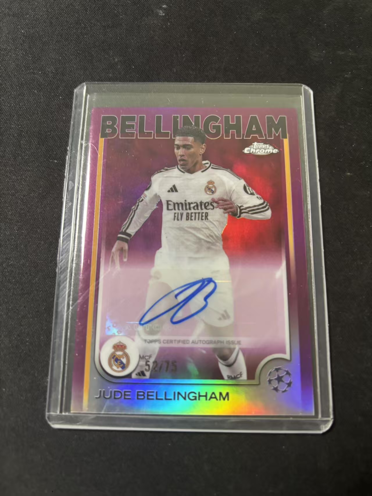 2024-25 Topps Chrome 欧冠TC Jude Bellingham 皇家马德里 贝林厄姆 大英帝星 52/75编 签字 品红折 折射 base签 乐观