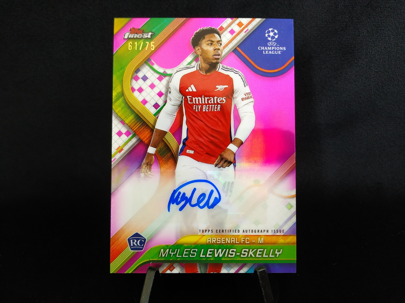 7-29【钢蛋儿拍卖】waby 1012 topps 24-25 Finest UCC 欧战 阿森纳 RC 新秀 粉折 签字 75编 迈尔斯 刘易斯 斯凯利 Myles Lewis Skelly 卡品如图