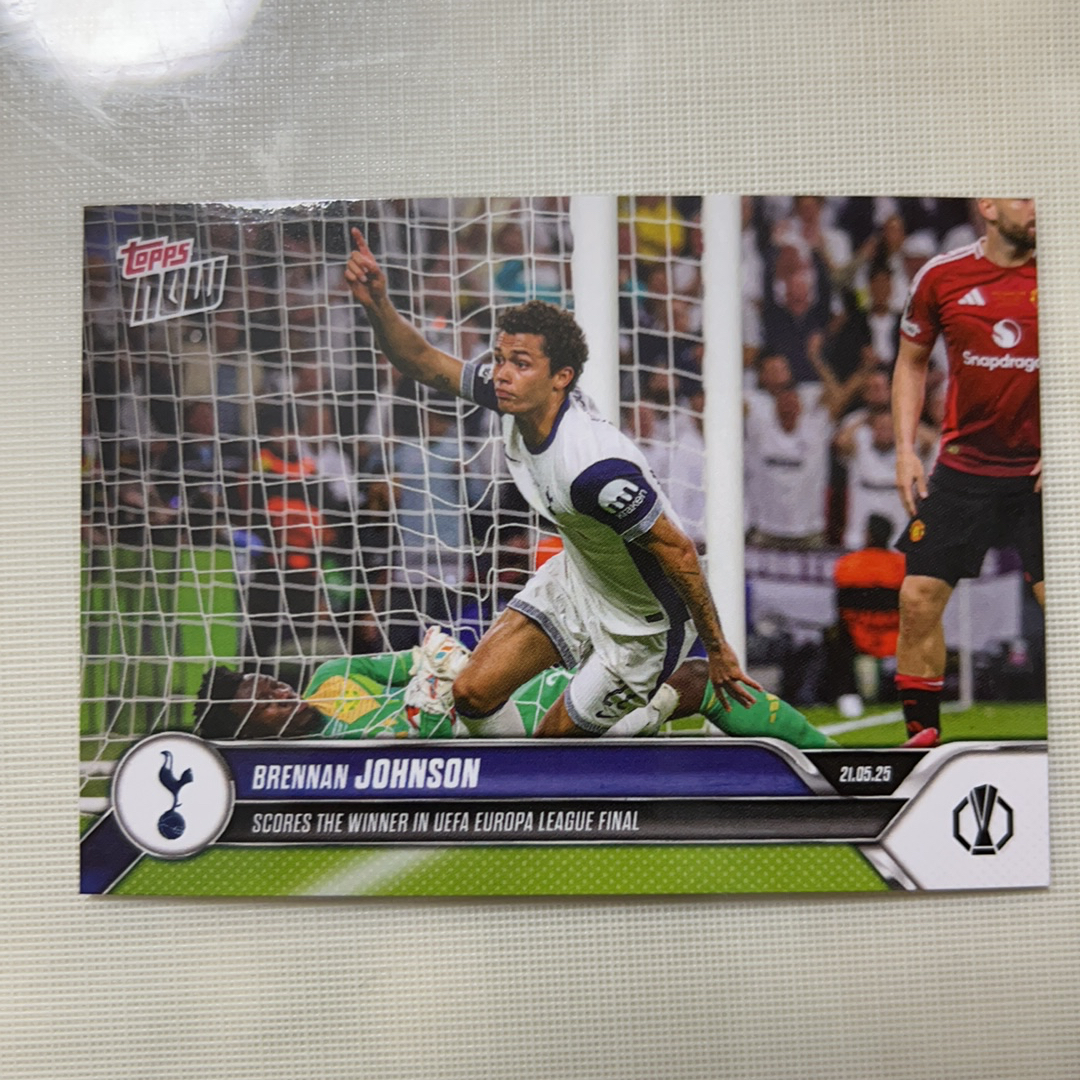2024-25 Topps Now Brennan johnson RC 托特纳姆热刺 英超 热刺 欧协联冠军 布伦南 约翰逊 打进欧协联决赛的第一粒进球 夺冠 击败曼联 超过鲁尼 新秀 卡淘第一张