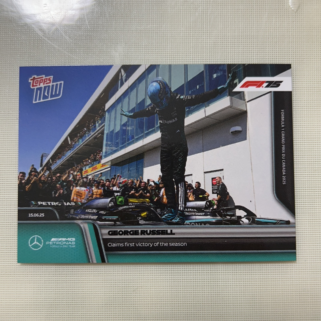 2025 Topps Now George Russell 乔治拉塞尔 Topps now系列 F1 75周年 世界一级方程式锦标赛 F1记录 本赛季的第一场伟大胜利 奔驰车队的首秀亮相