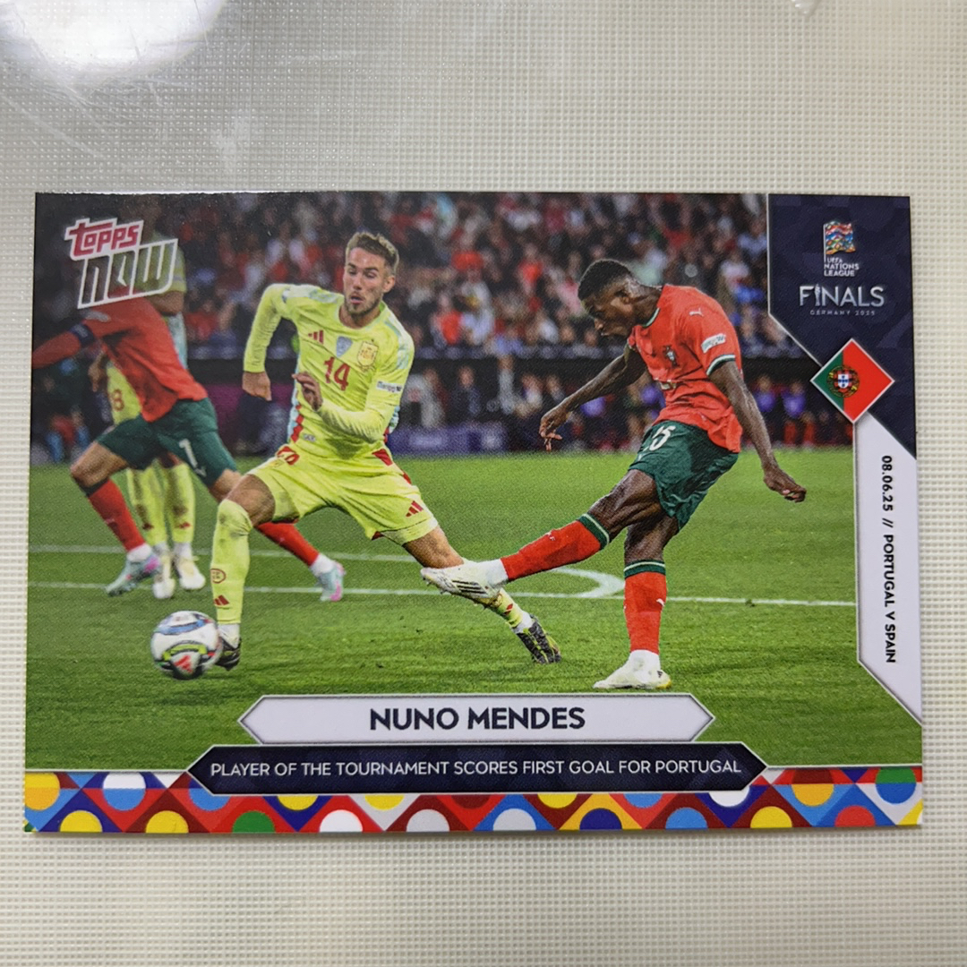2024-25 Topps Now Nuno Mendes 努诺 门德斯 葡萄牙后卫 欧国联冠军 c罗队友 巴黎 欧冠冠军 葡超 英超 欧冠 点球大战扑出关键点球 6.25日 屁屁卡卡 实卡精美