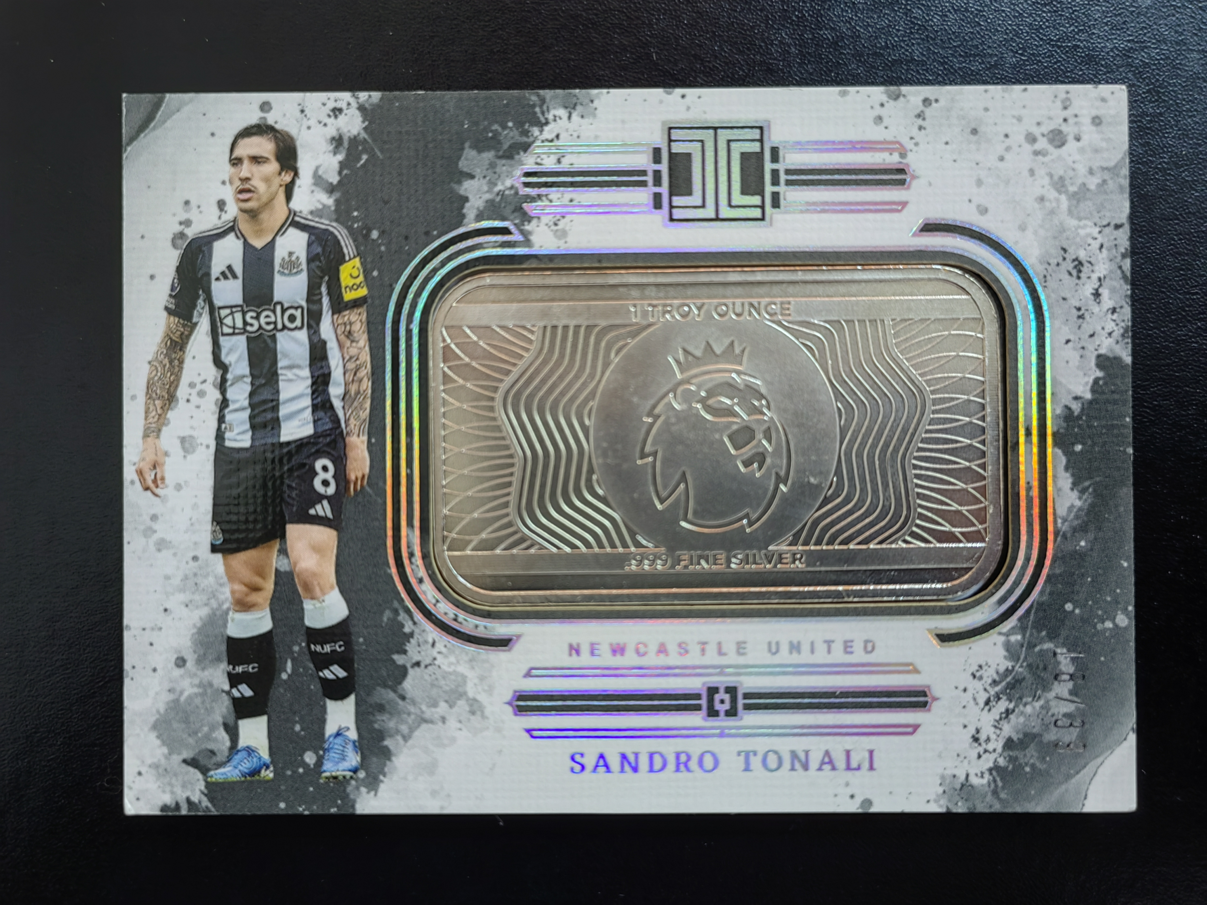 【魔都宝鉴 wz0116】2024-25 Panini Impeccable 小真金 英超 银块 金属块 实物 18/39编 银闪 Sandro Tonali 桑德罗托纳利 纽卡斯尔联