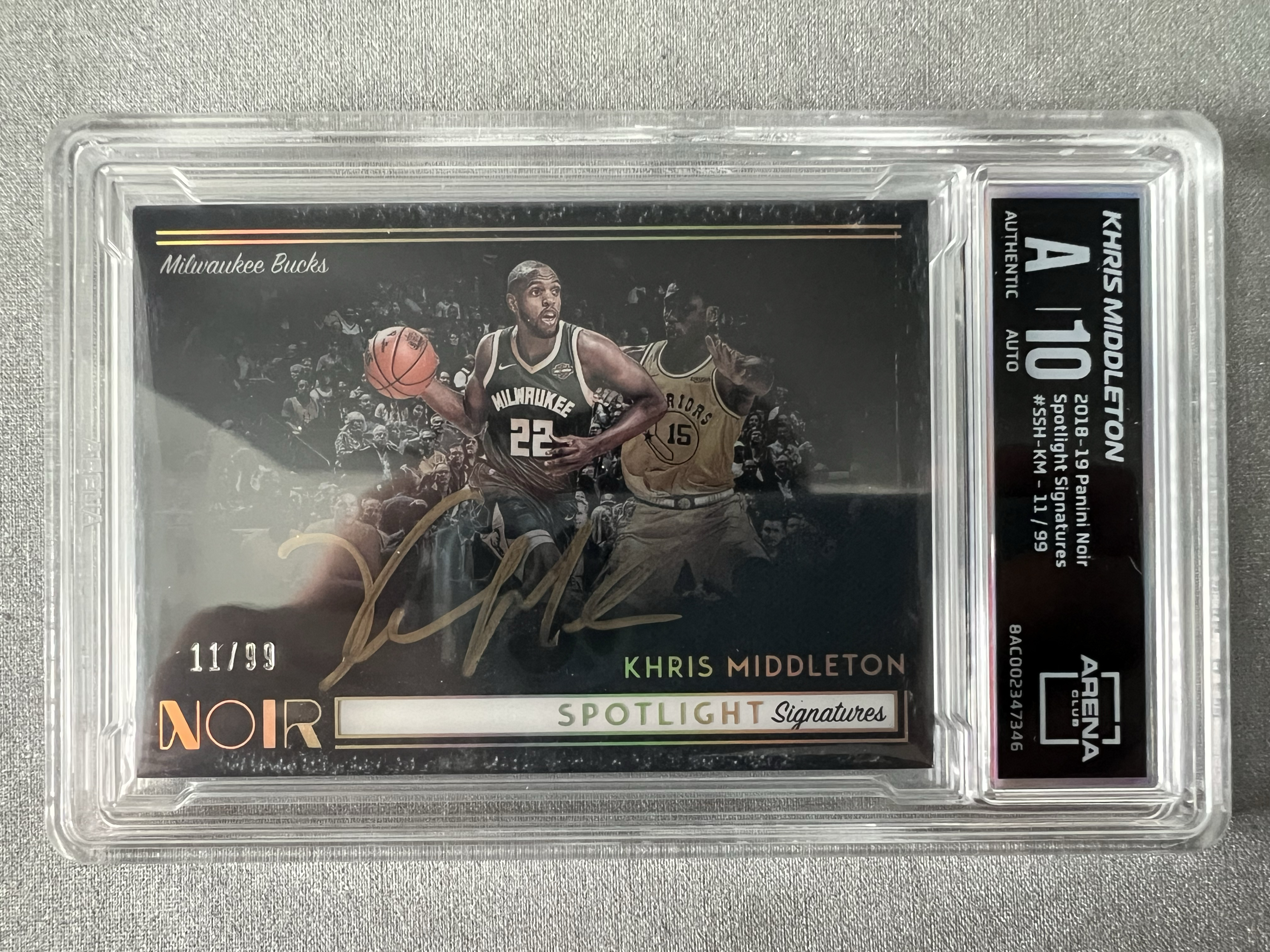 2018-19 Panini Noir Khris Middleton 米德尔顿 雄鹿 99编 球员签字卡 卡签 金笔签 字迹工整清晰 大比例 聚光灯 ARENA评级 10分 凑套必备 值得收藏