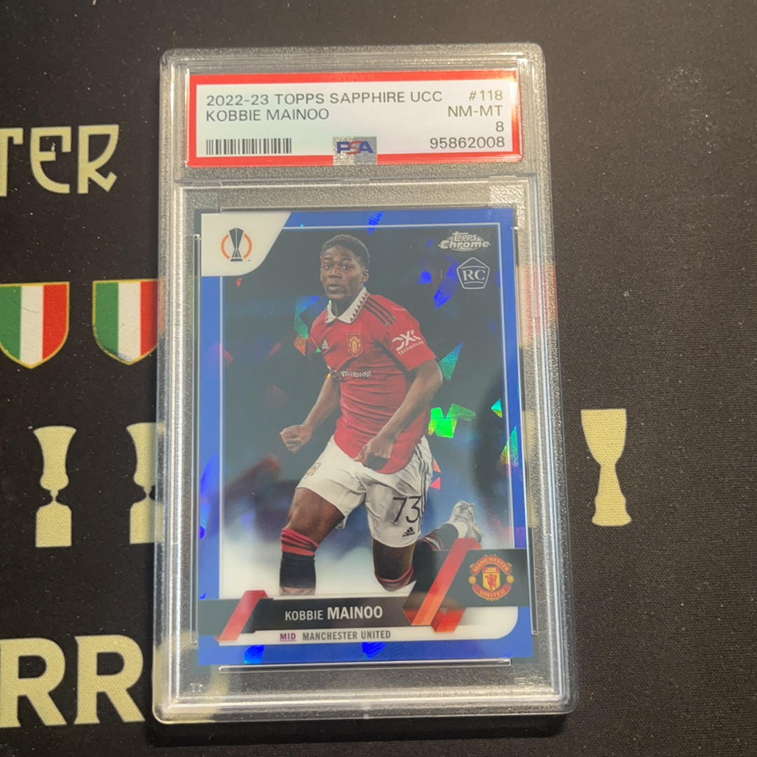 2022-23 Topps Chrome Kobbie Mainoo RC 蓝宝石 新秀 曼联 曼彻斯特联 科比 梅努 蓝碎冰折 折射 PSA8分 评级