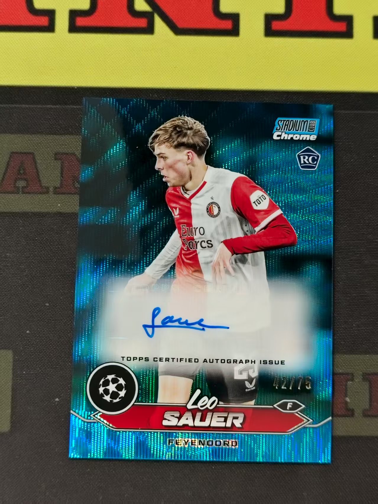 2024 topps Chrome Leo Sauer TC 欧冠 竞技场 荷甲 费耶诺德 新秀 rc 莱奥·绍尔 签字 蓝波纹折 75编 卡品如图 ccc