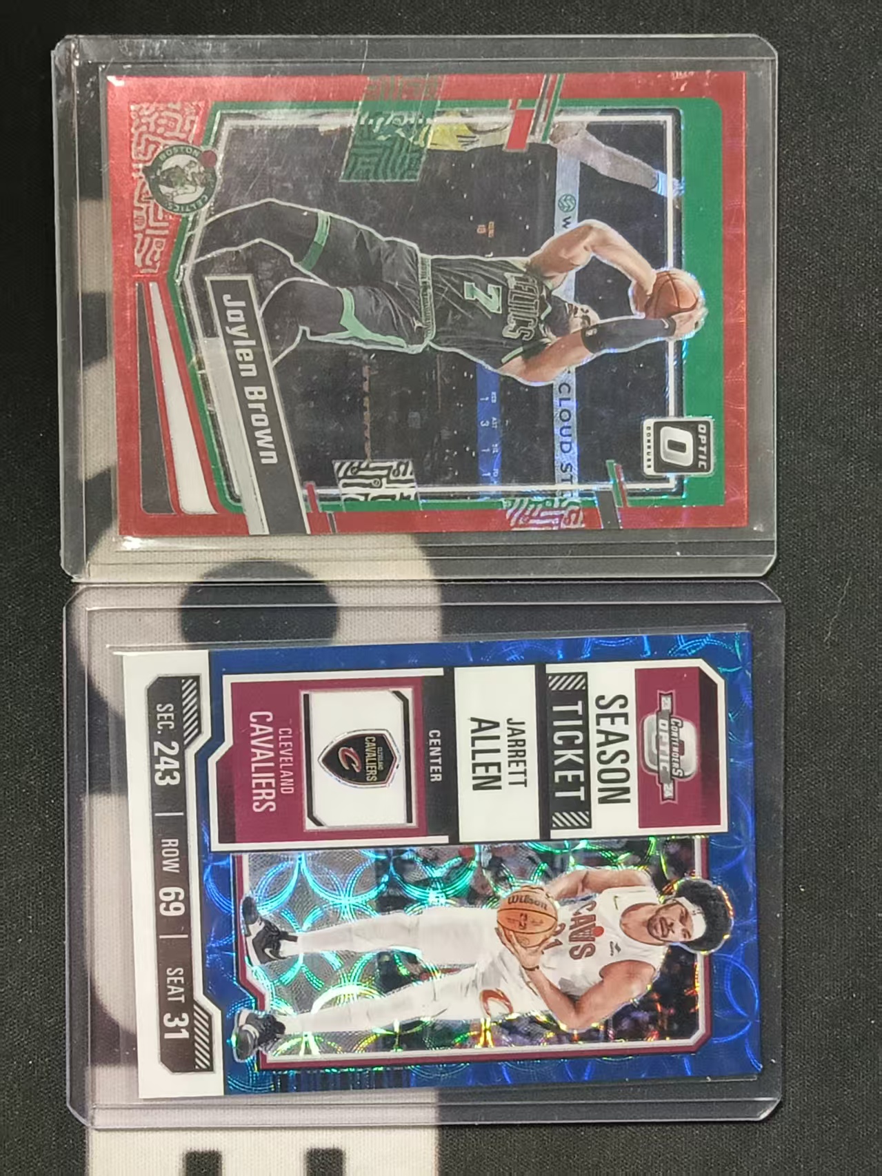 【啃卡代拍】2张 2023-24 panini 杜蕾斯op 凯尔特人 杰伦 布朗 红圈圈折 球票op 骑士 贾勒特 阿伦 45编 蓝圈圈折 折射 烂0725F 鑫
