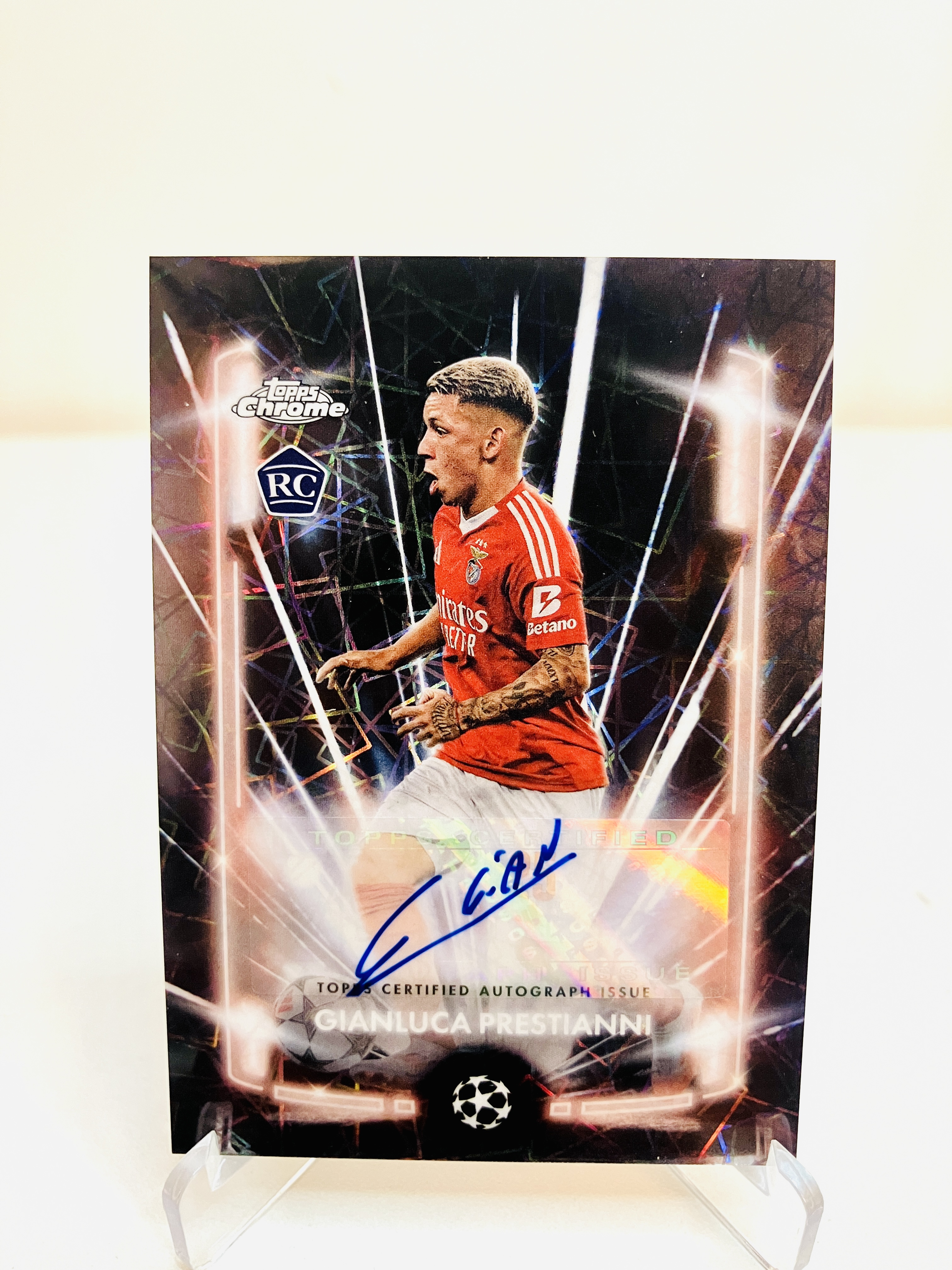 2024-25 Topps Chrome Gianluca Prestianni RC 欧冠TC 本菲卡 新秀 詹卢卡 普雷斯蒂安尼 黑镭射签 签字 签名 阿根廷 收藏必备 卡品如图-马儿来了