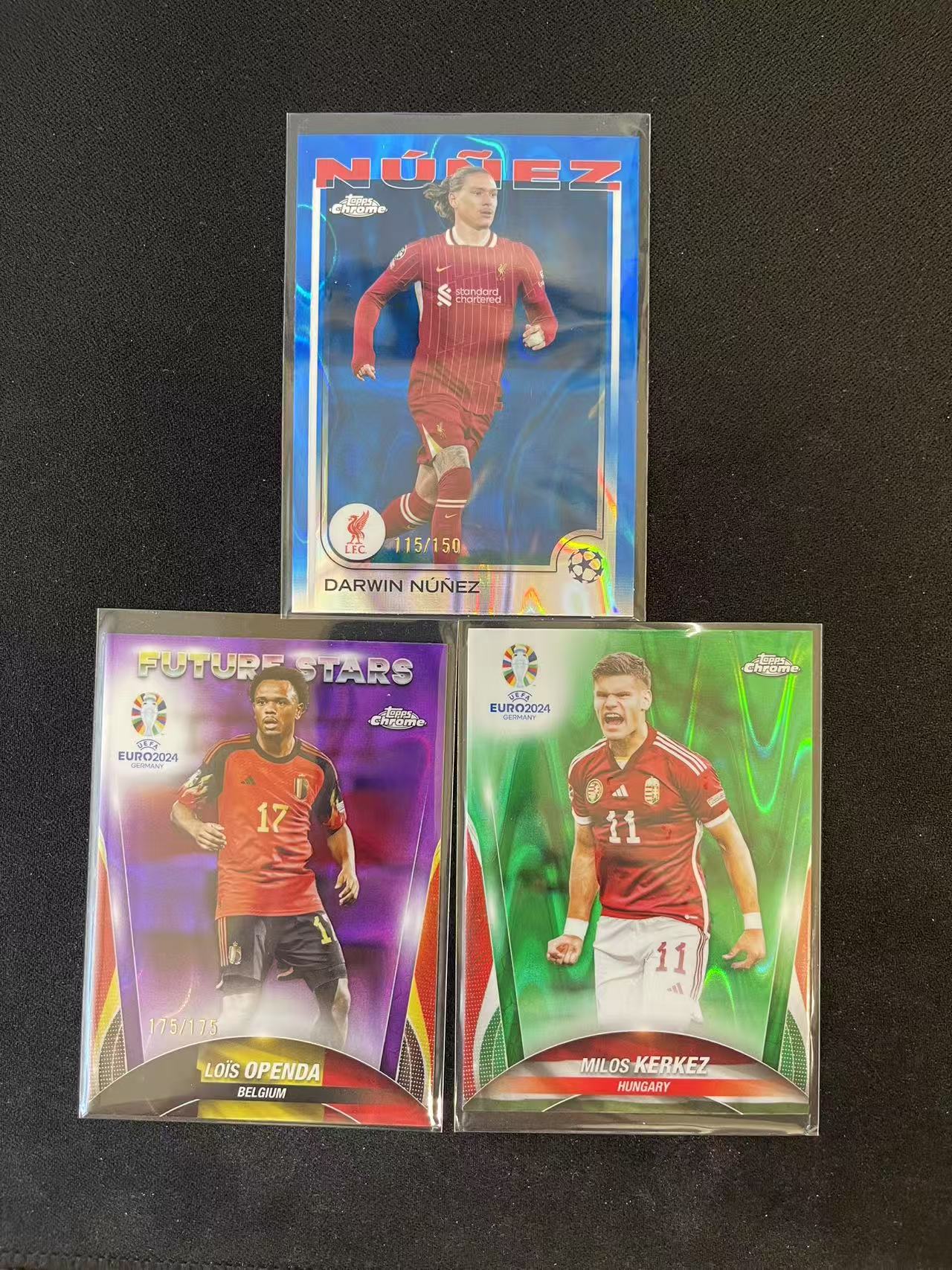 2024-25 Topps Chrome Darwin Nunez 欧洲杯 欧冠 TC 奥蓬达 科尔克兹 努涅斯 带编折射 绿熔岩折 紫折 蓝折 三张打包 lot不包卡品 利物浦 zzz