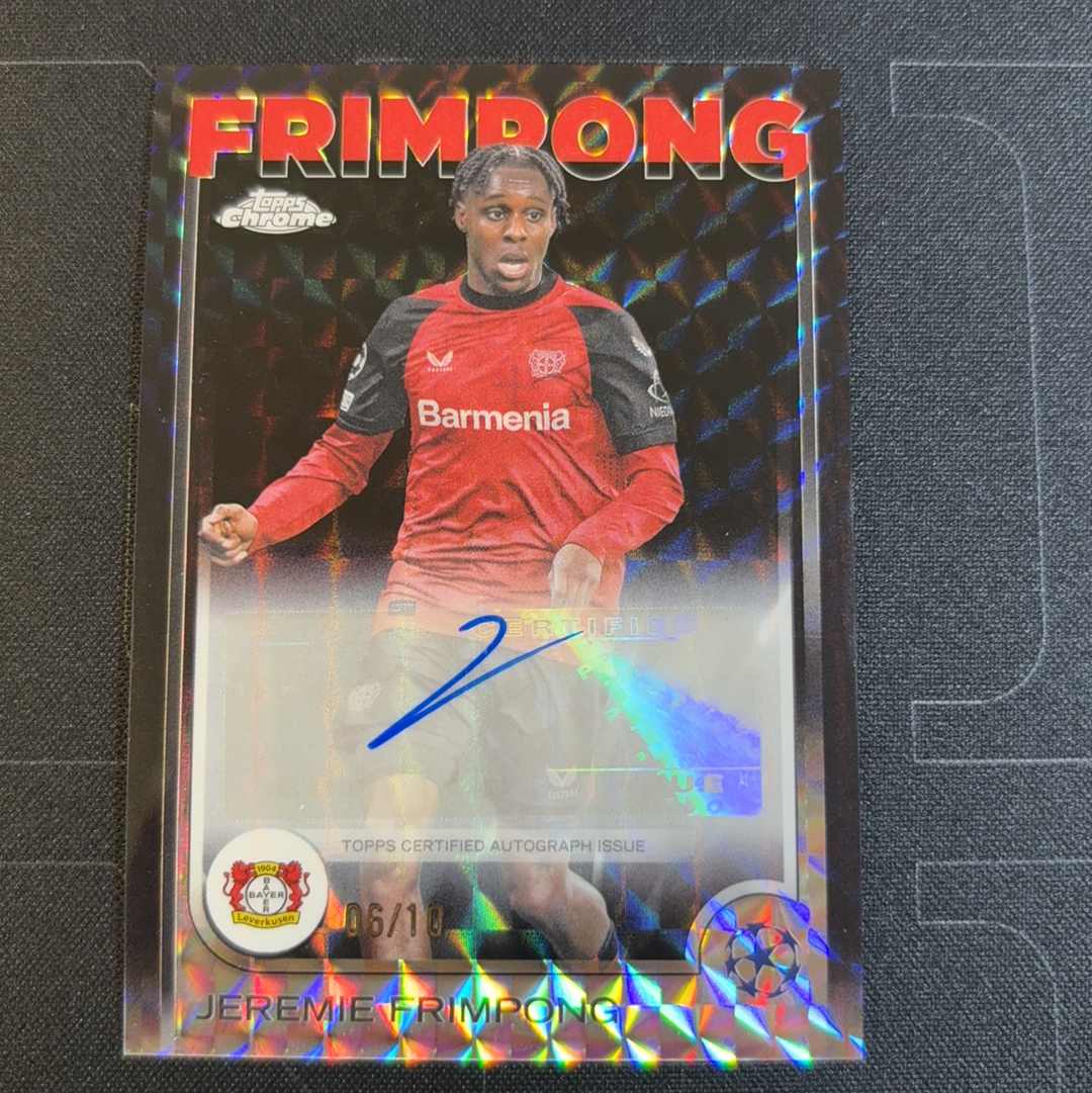 【风速狗】2024-25 Topps Chrome hobby Jeremie Frimpong TC欧冠 欧战 蓝宝石 勒沃库森 弗林蓬 签字 签名 完美签 6/10编 超低编 黑折 细节已拍 亲古