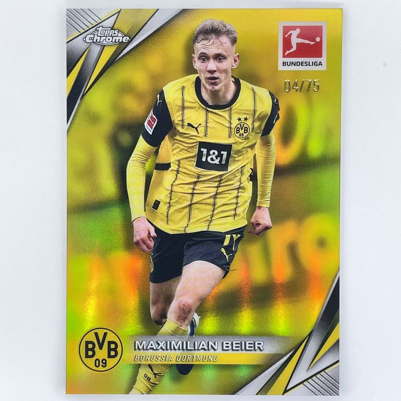 L+ 2024-25 Topps Bundesliga Chrome Maximilian Beier 马克西米利安 拜尔 霍芬海姆 多特蒙德 德国 75编 黄折 折射 德甲 TC 轻印如图 BM001