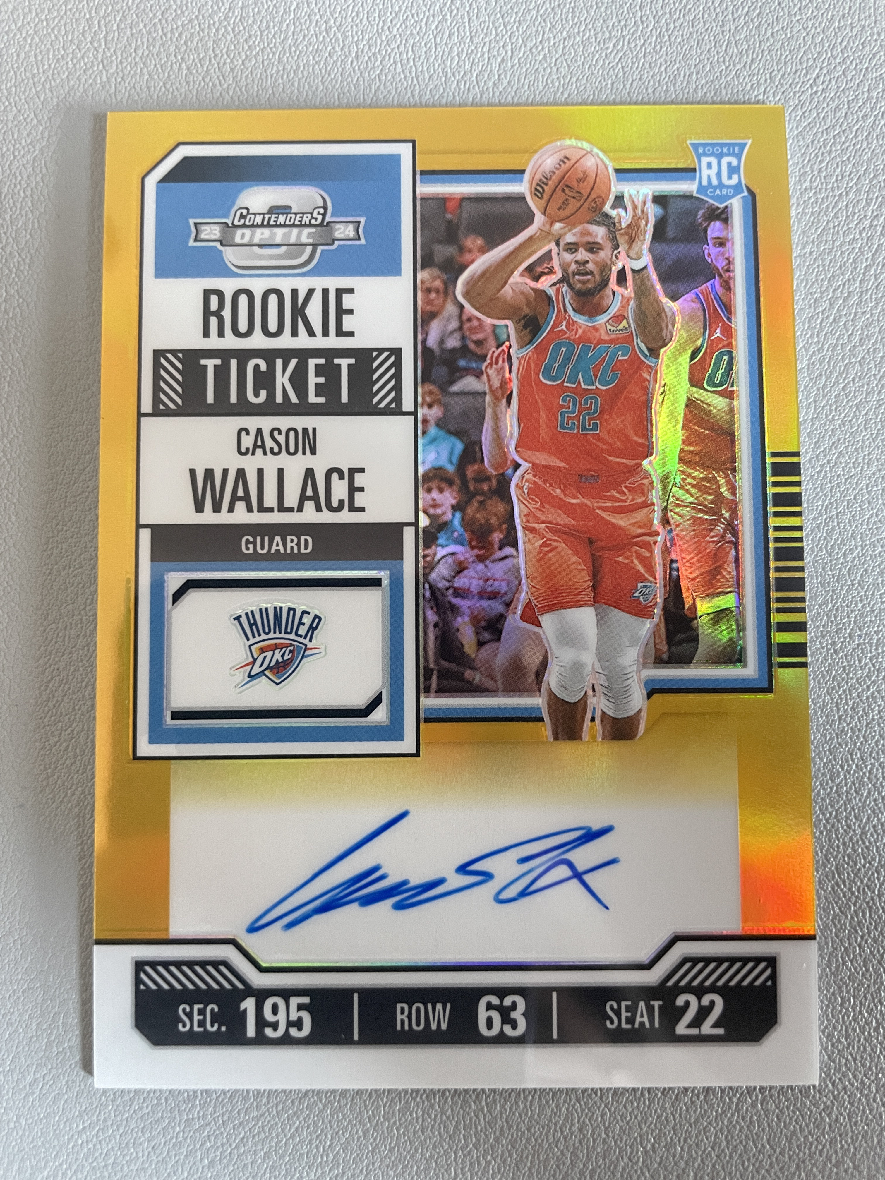 2023-24 Panini Contenders Optic Cason Wallace RC 球票 卡森 华莱士 雷霆 新秀 10编 正球票 金折 签字 卡签 边角微瑕如图 亚历山大队友 未来可期