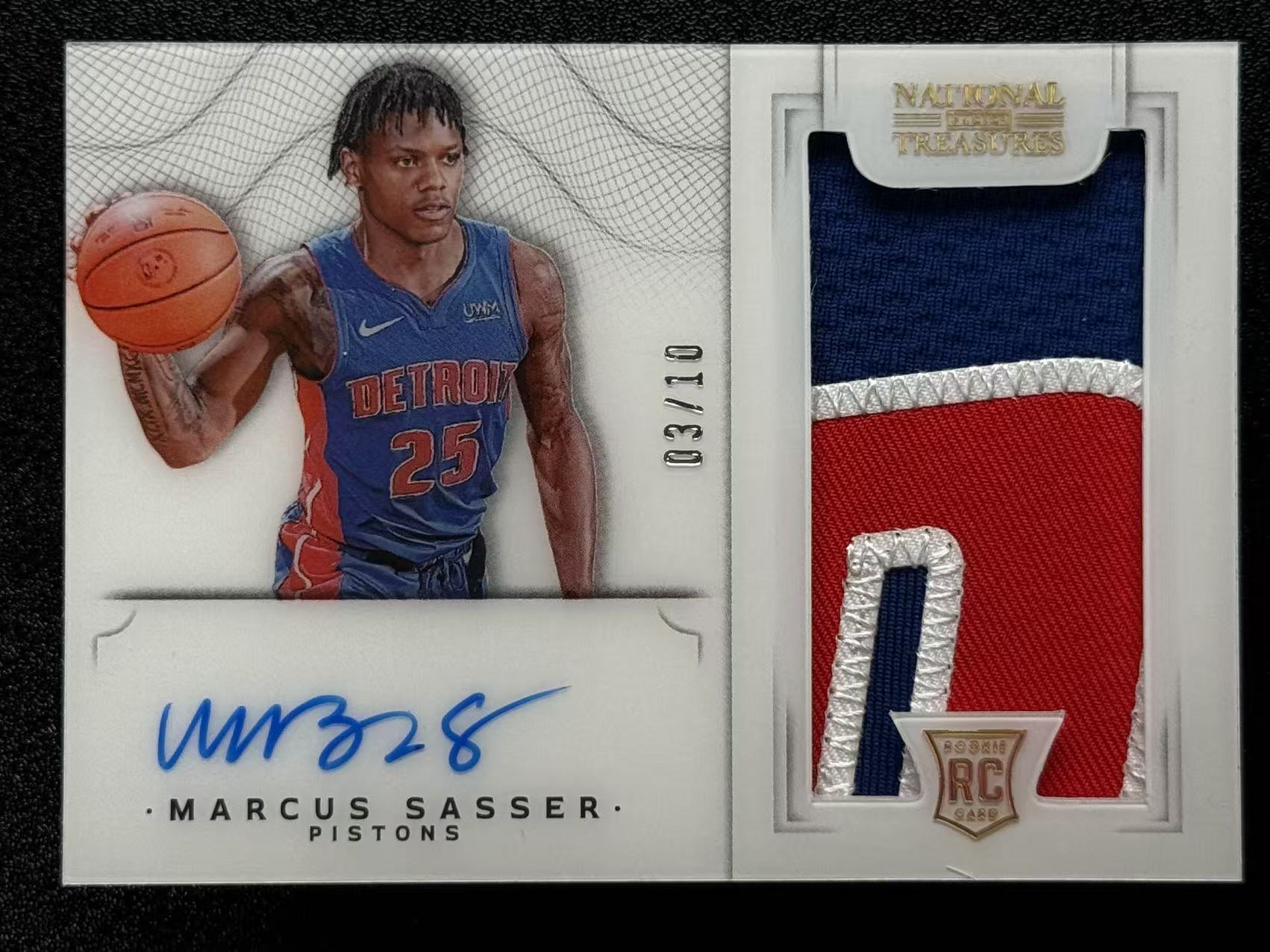 2023-24 Panini National Treasures Marcus Sasser 马库斯萨瑟 新秀RC 活塞 国宝 10编 RPA patch 复古 镜面 签字 卡签 微瑕 7啊 258