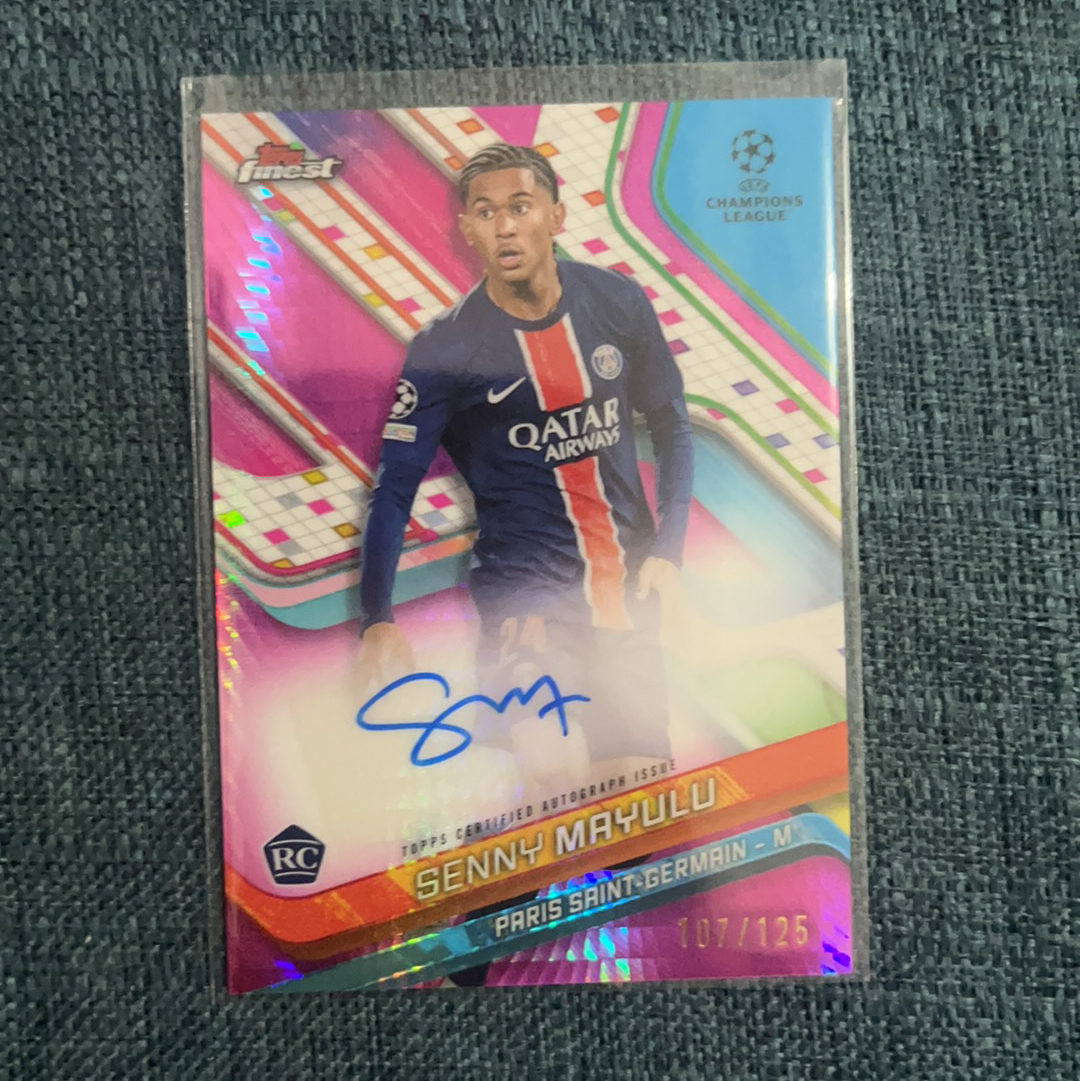 2024-25 Topps Finest senny mayulu RC 新秀 塞尼 马尤卢 巴黎圣日尔曼 125编 粉折 107/125 签字 值得收藏 卡品如图 jiejie