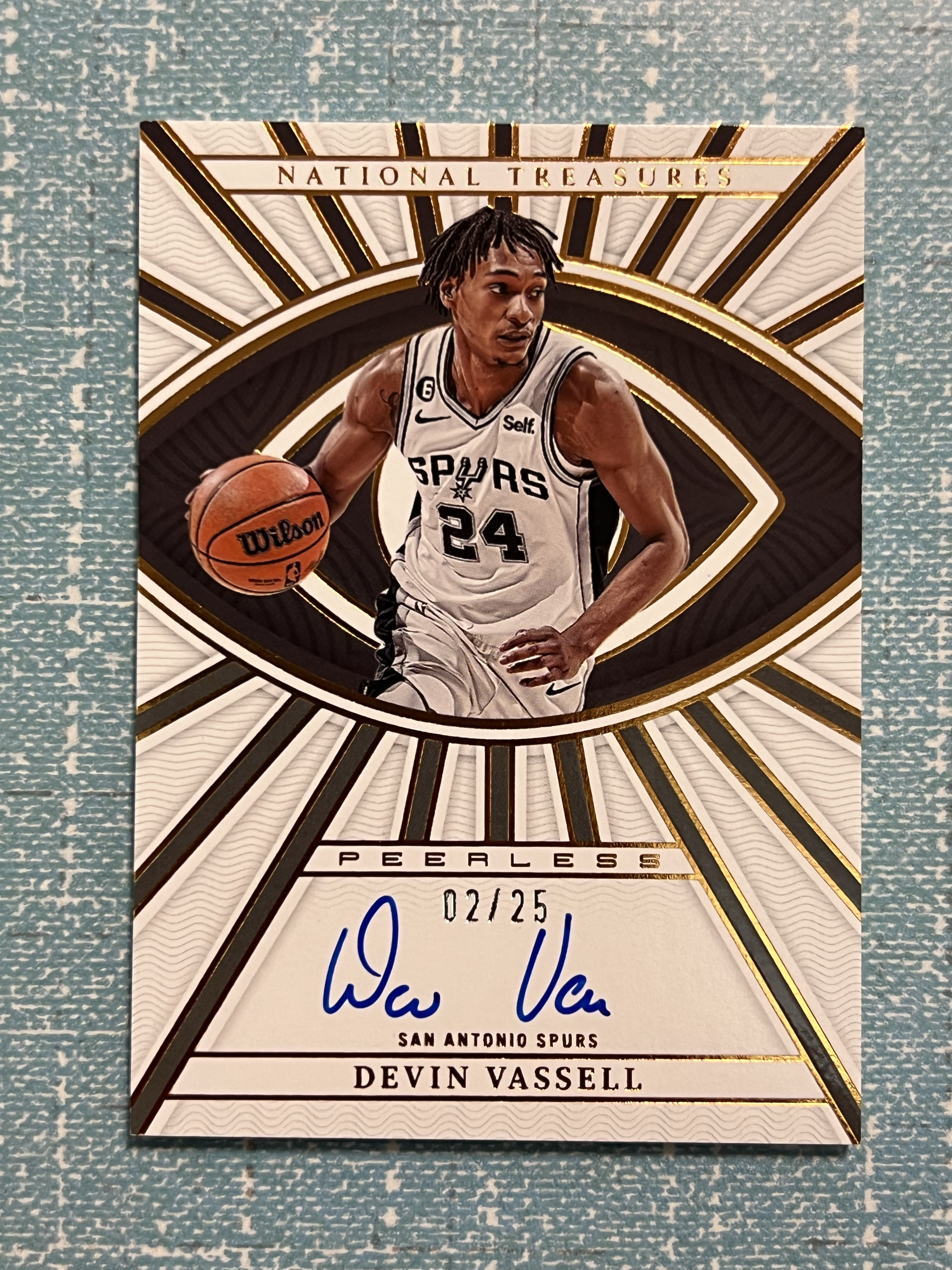 2022-23 Panini National Treasures Devin Vassell 国宝 马刺 德文 瓦塞尔 签字 2/25编 铜平行 大眼睛 卡签 tan