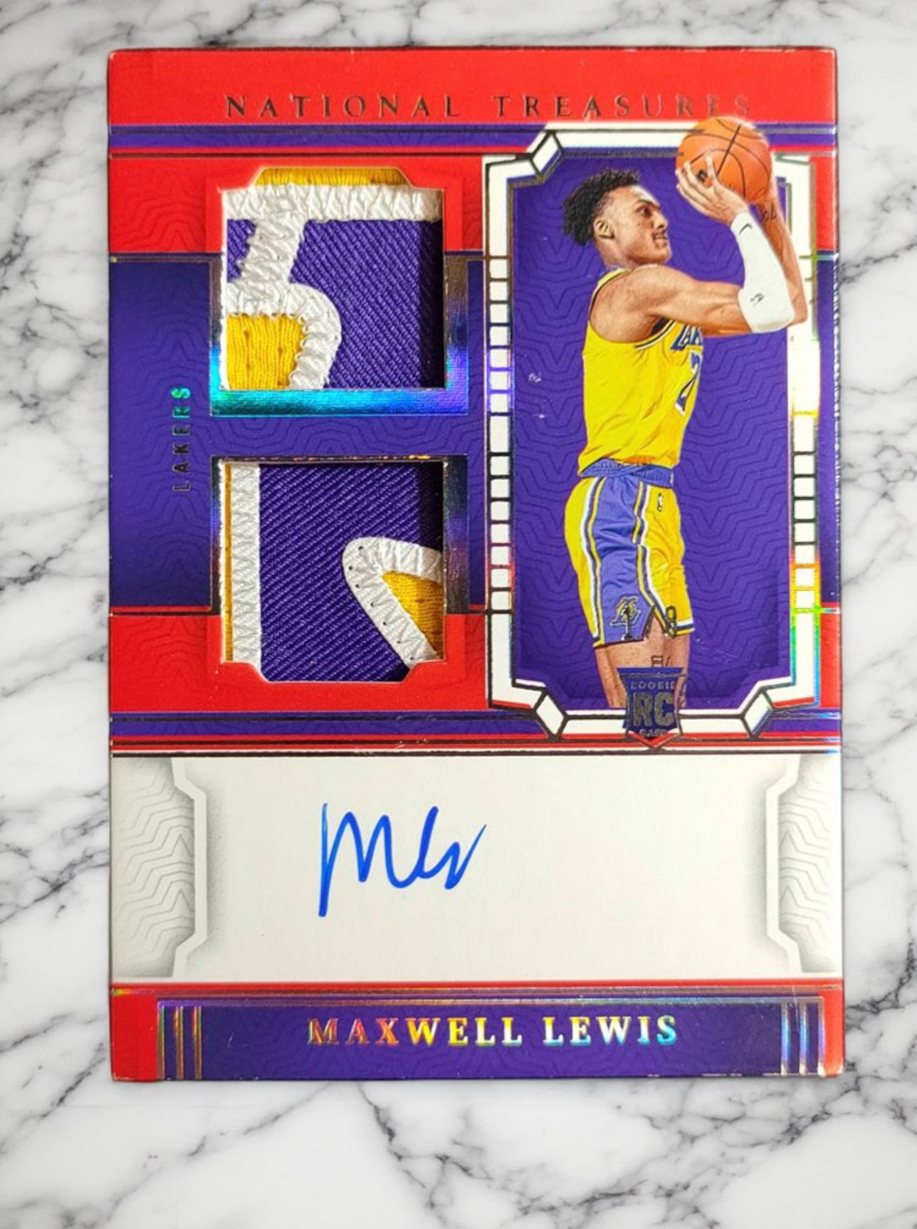 2023-24 Panini National Treasures Maxwell Lewis RC 新秀 马克斯韦尔 刘易斯 国宝1/8编吵低编双窗patch 红平行 签名卡 卡签 微瑕疵 介意勿拍