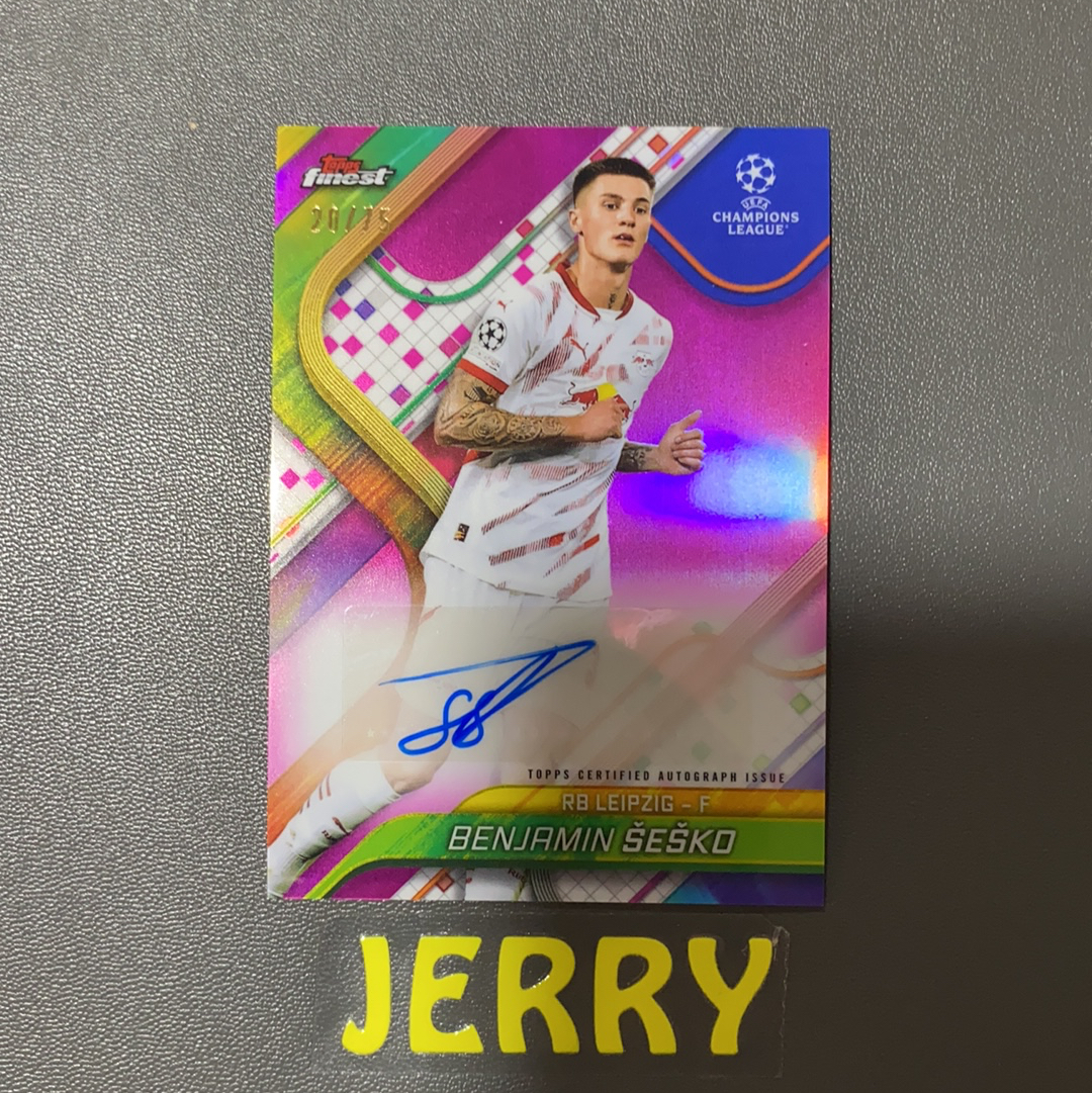 2024-25 Topps Finest Benjamin Šeško 欧冠 ft 莱比锡红牛 本杰明 塞斯科 赛斯科 20/75编 签字 粉折 品红折 签名 卡品如图【陈先生】
